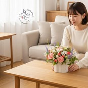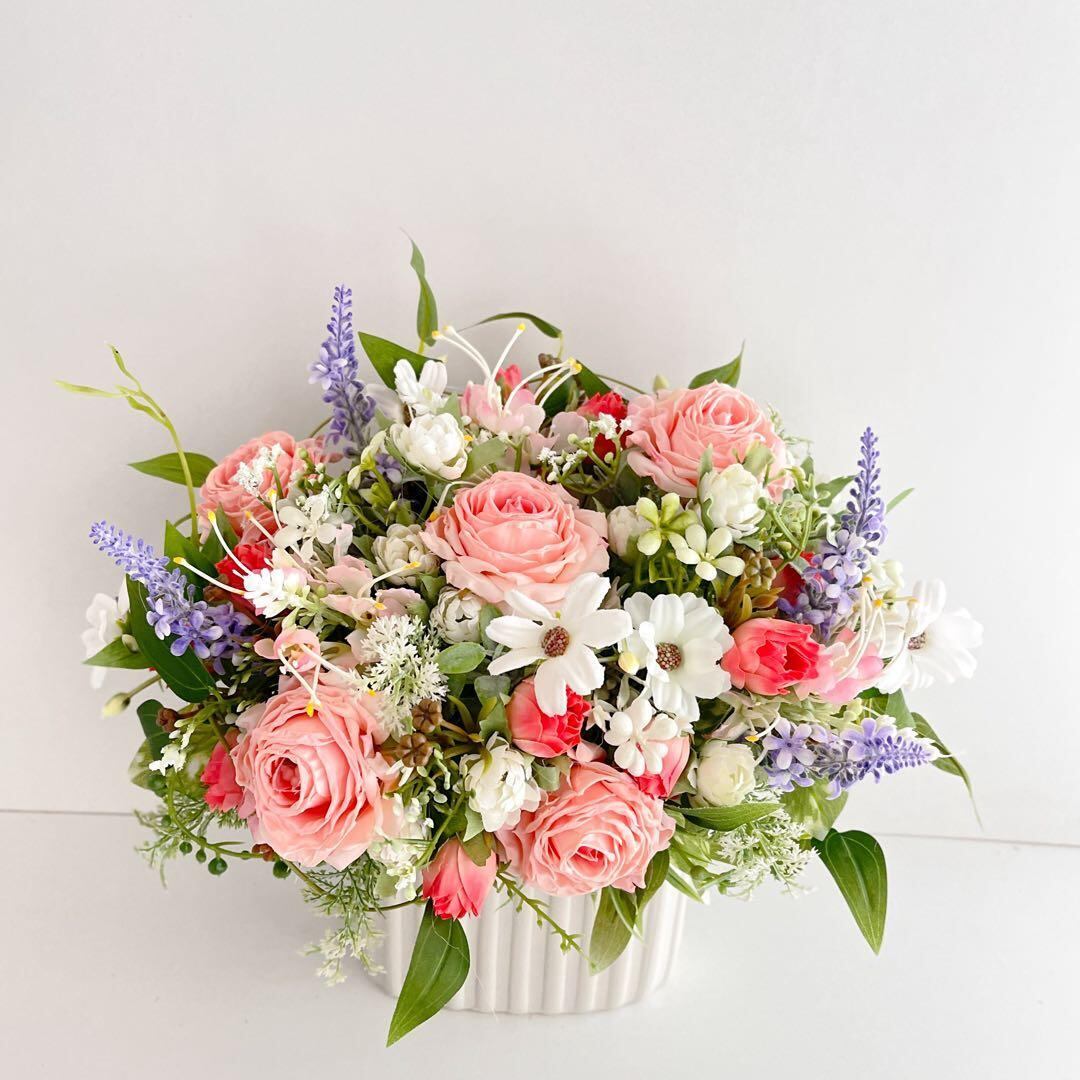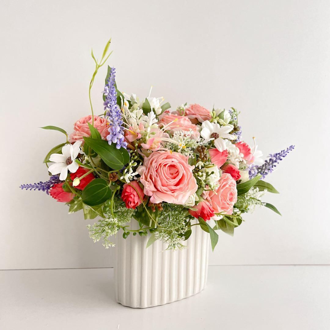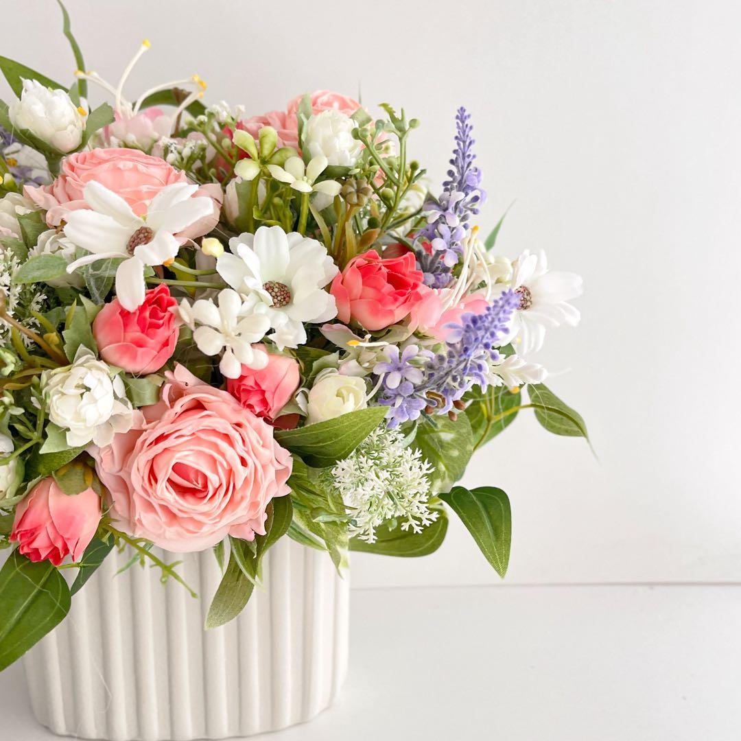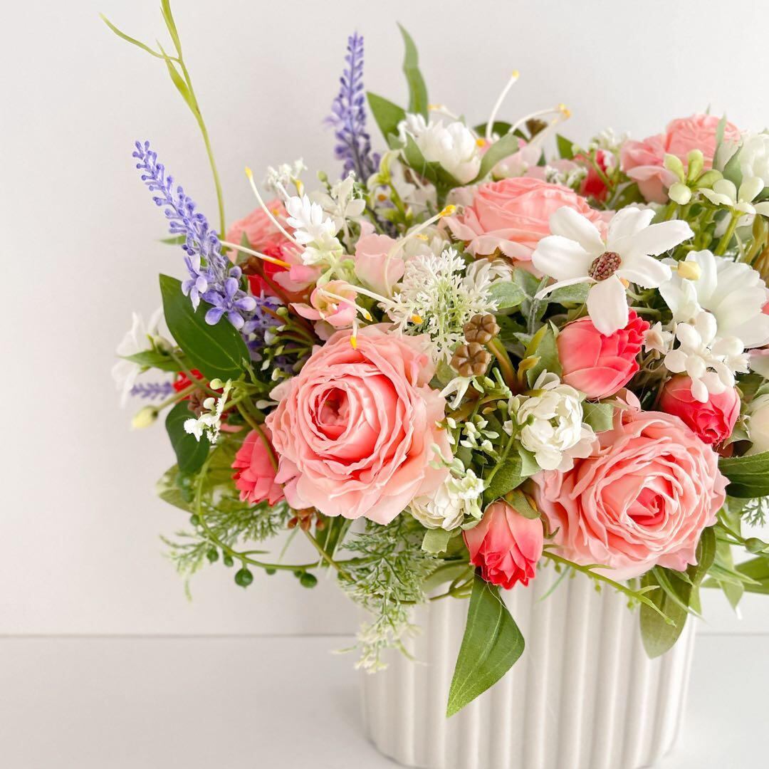 毎日に小さな春を|ローズとラベンダーの光触媒フラワーアレンジ春飾り 春アレンジ アーティフィシャルフラワー