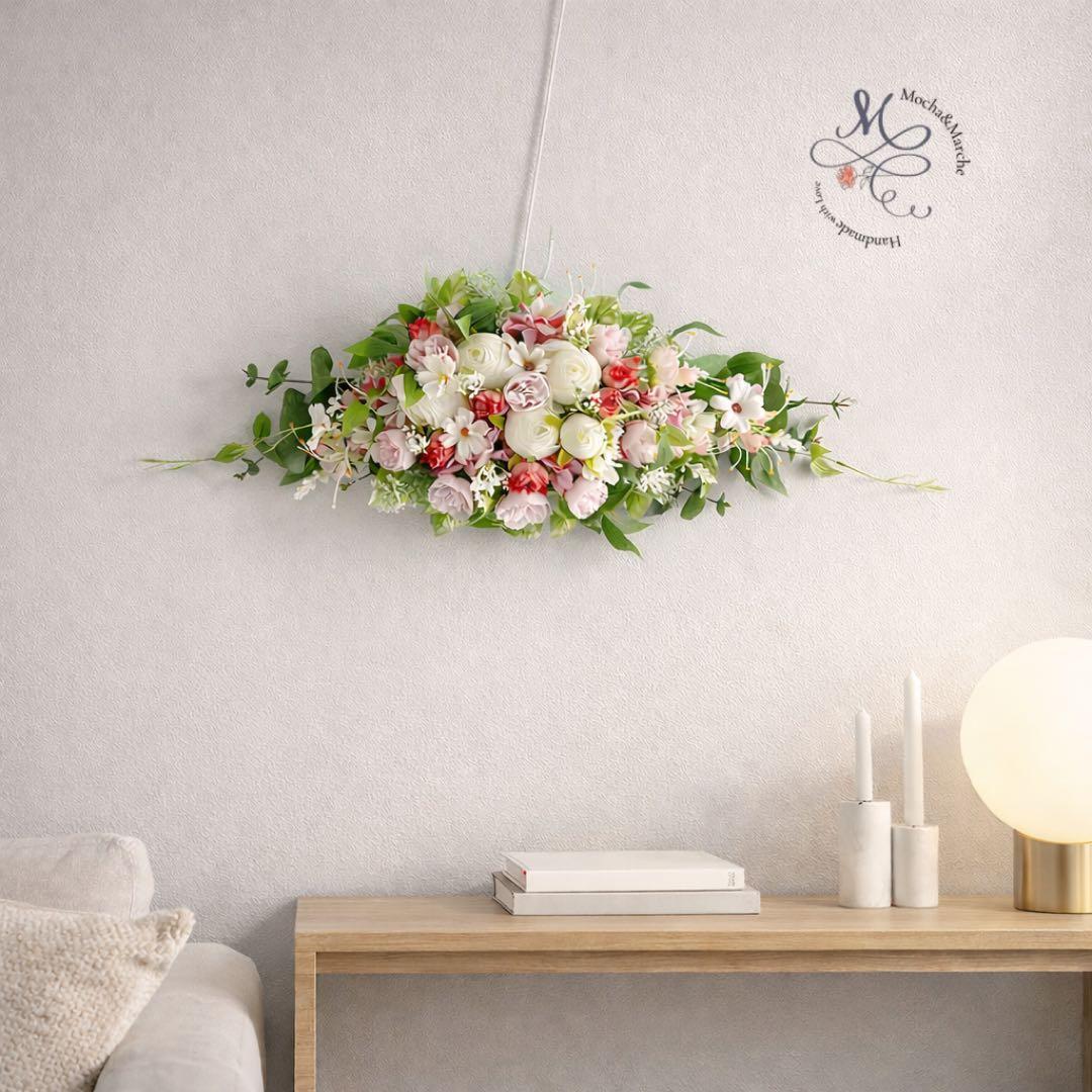 壁に、棚に、春の光を呼び込む2WAYの横長スワッグ 〜光触媒で空気もクリーンに〜 アーティフィシャルフラワー