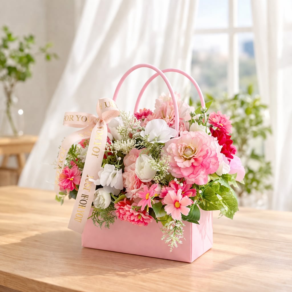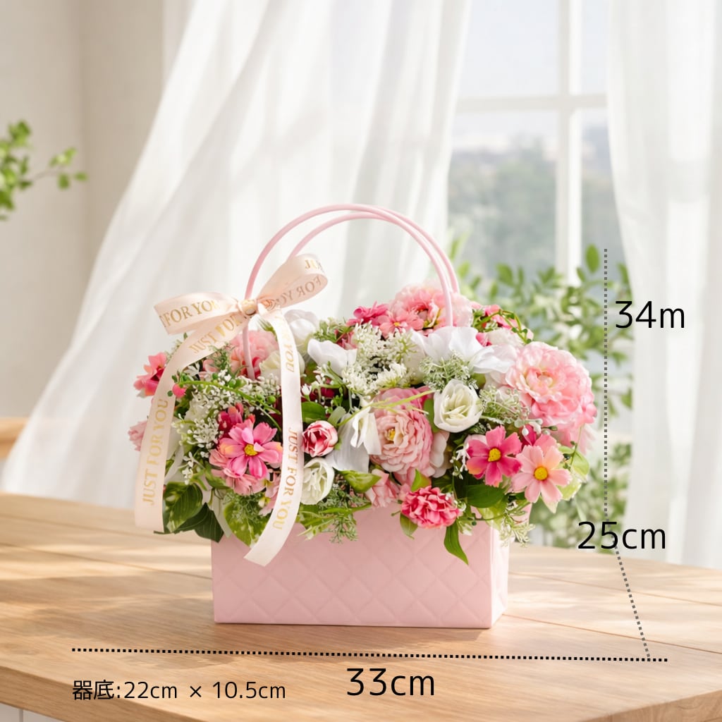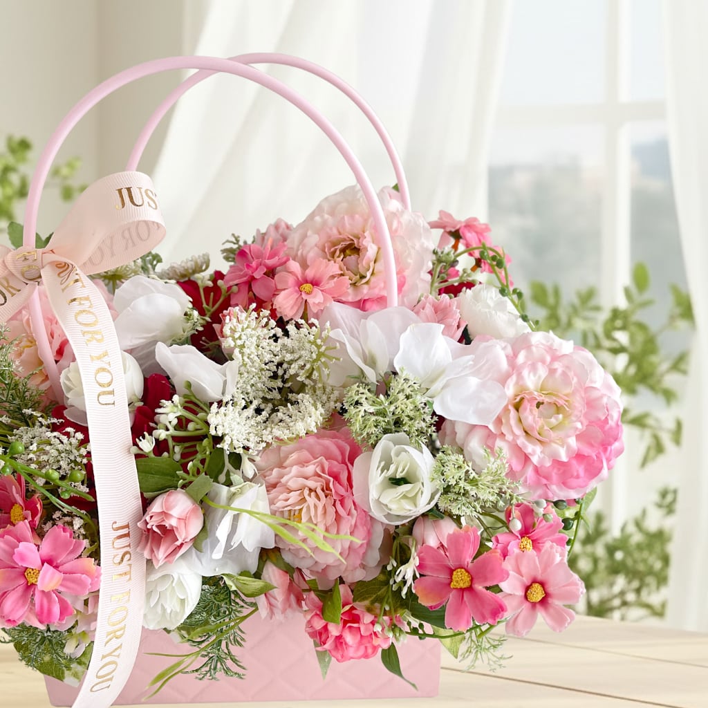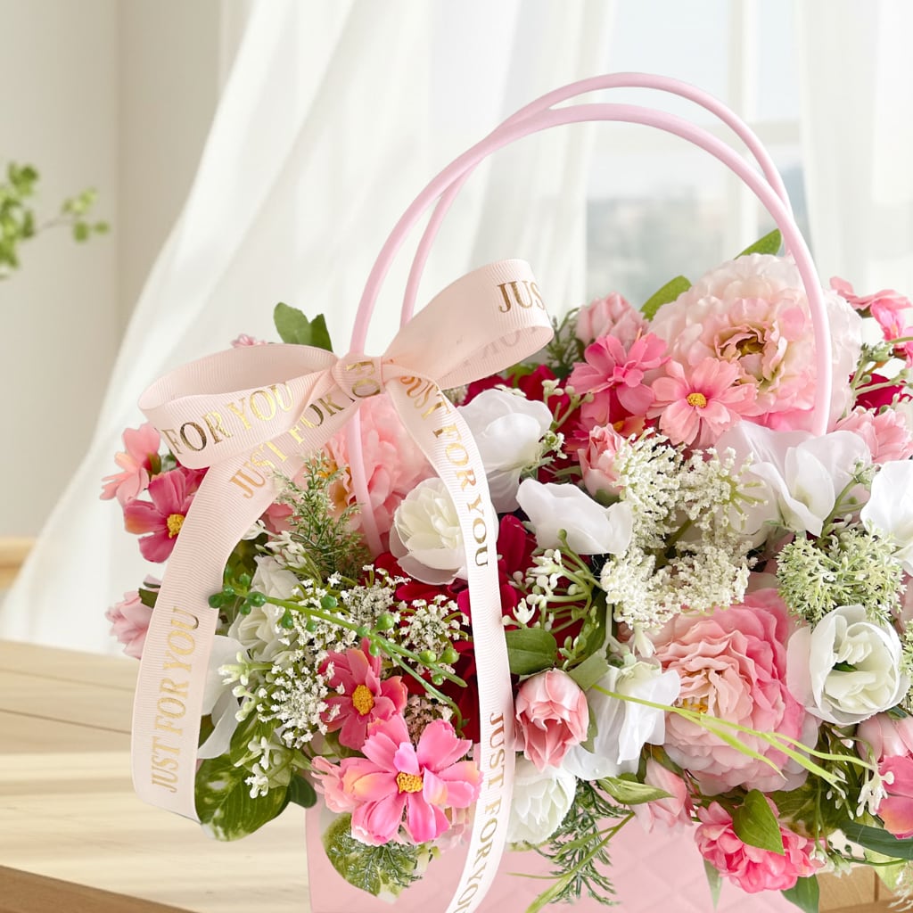 【光触媒フラワー】バッグ型アレンジ|華やかなお花たちの贈り物|誕生日・母の日 |アーティフィシャルクラワー