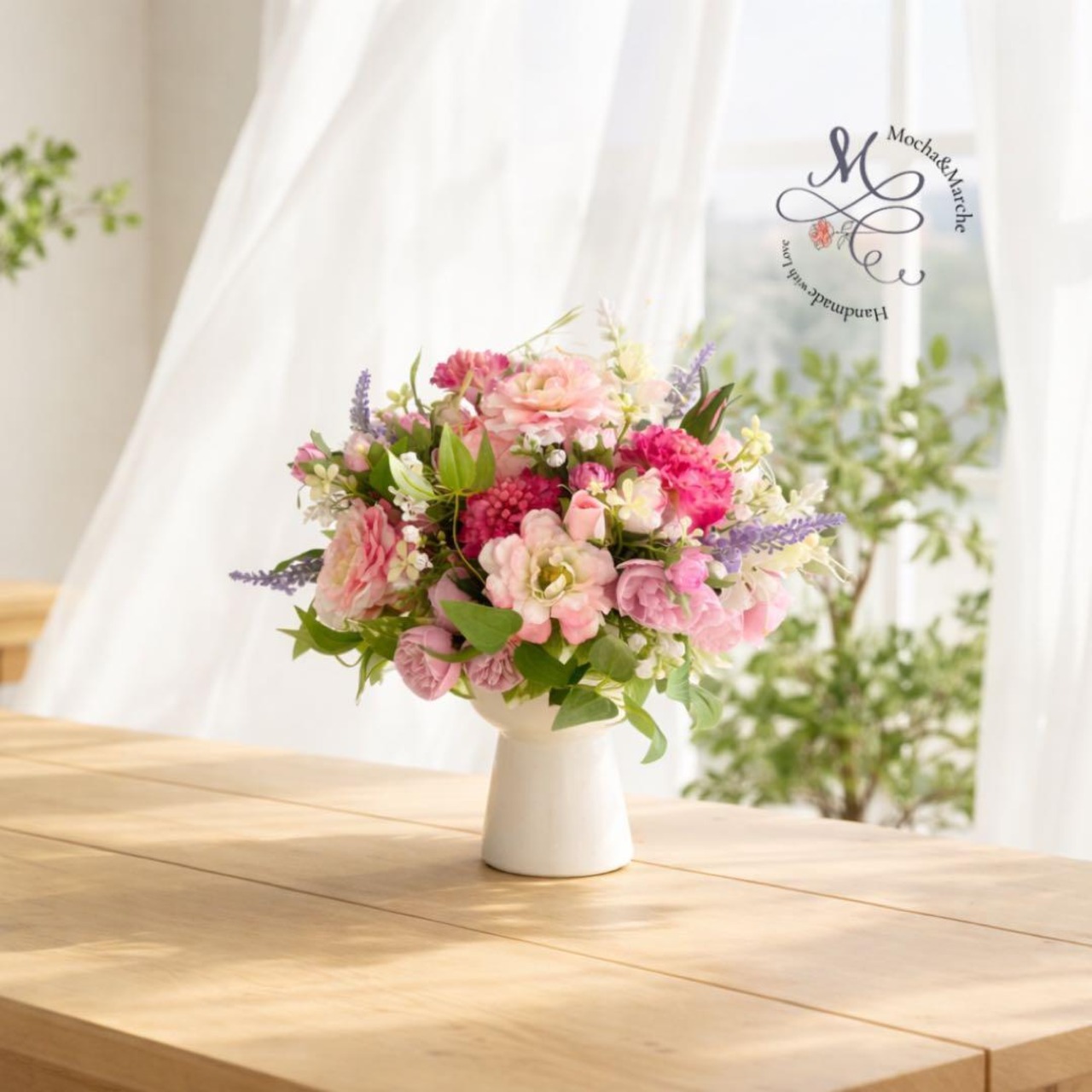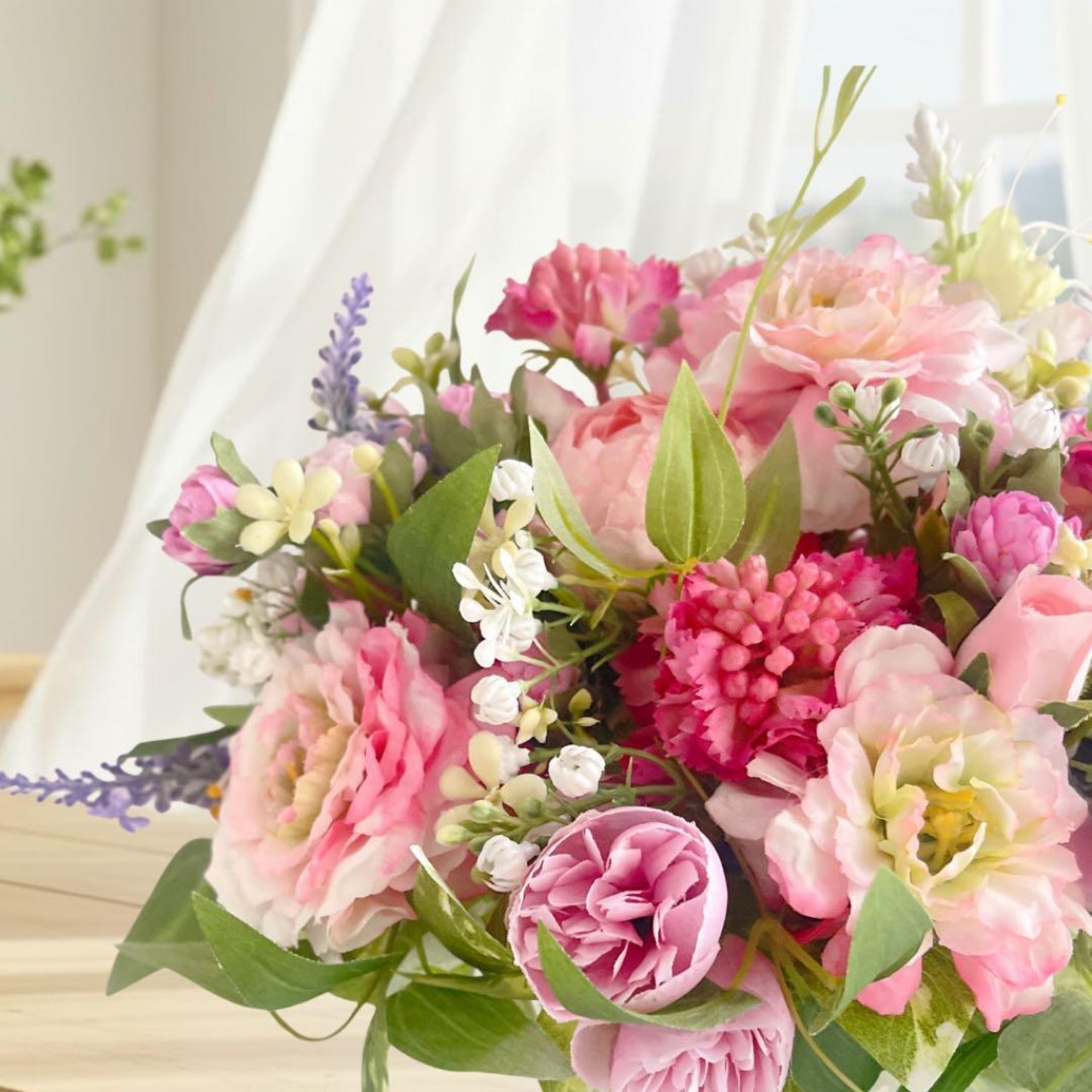 やわらかな光が差し込む朝の部屋に、そっと花が咲いたような優しいフラワーアレンジメント◌ ͙❁˚