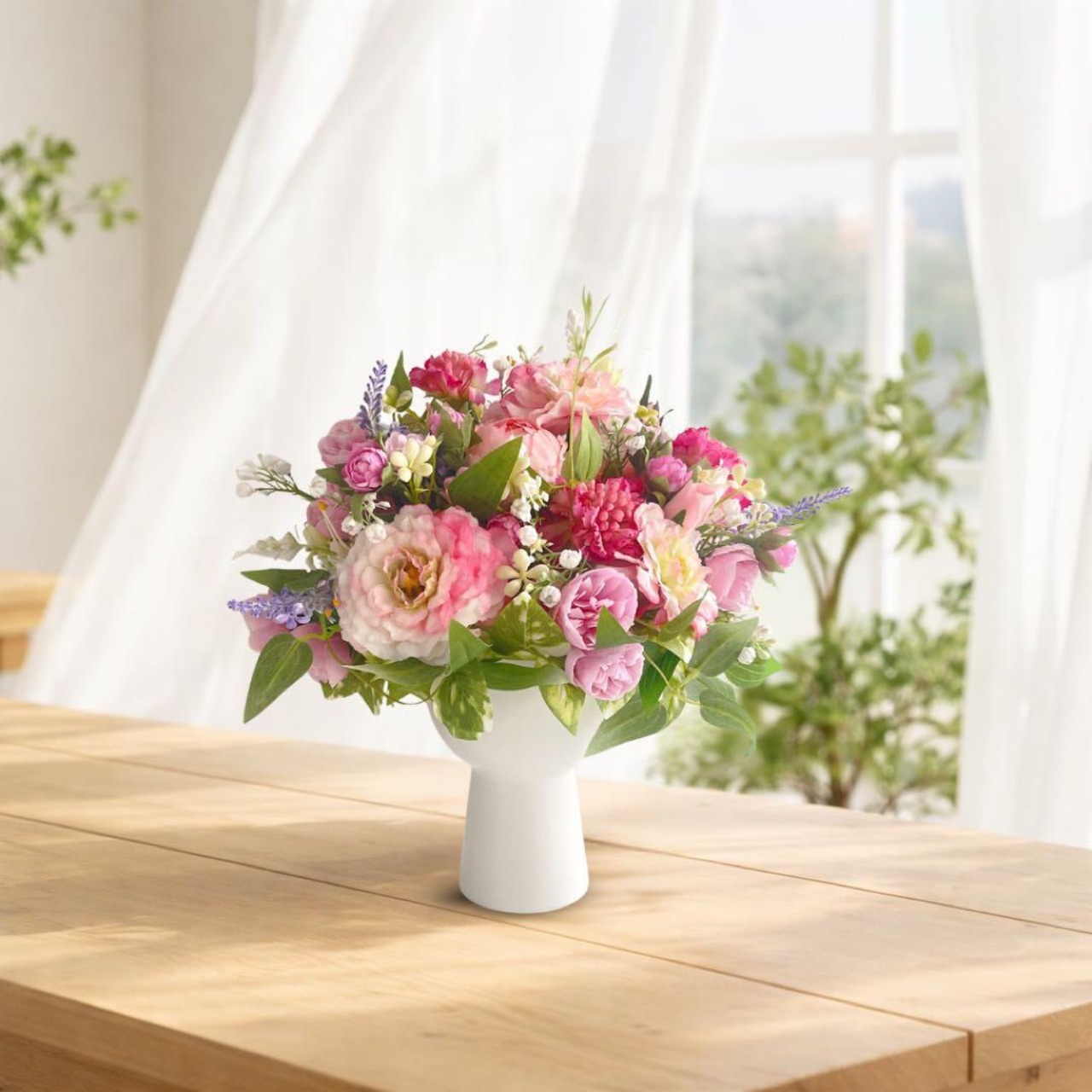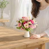 【光触媒フラワー】母の日の」贈り物 ローズとピオニーの陶器アレンジ|上品なピンクの枯れない花 アーティフィシャルフラワー