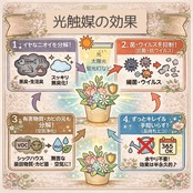 太陽や照明の光に反応し、「消臭・除菌・抗菌」効果を発揮。