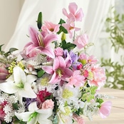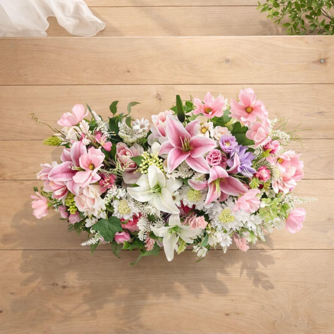 春の瞬間を閉じ込めたかのような、圧倒的な華やかさを誇る特大アレンジメントです。