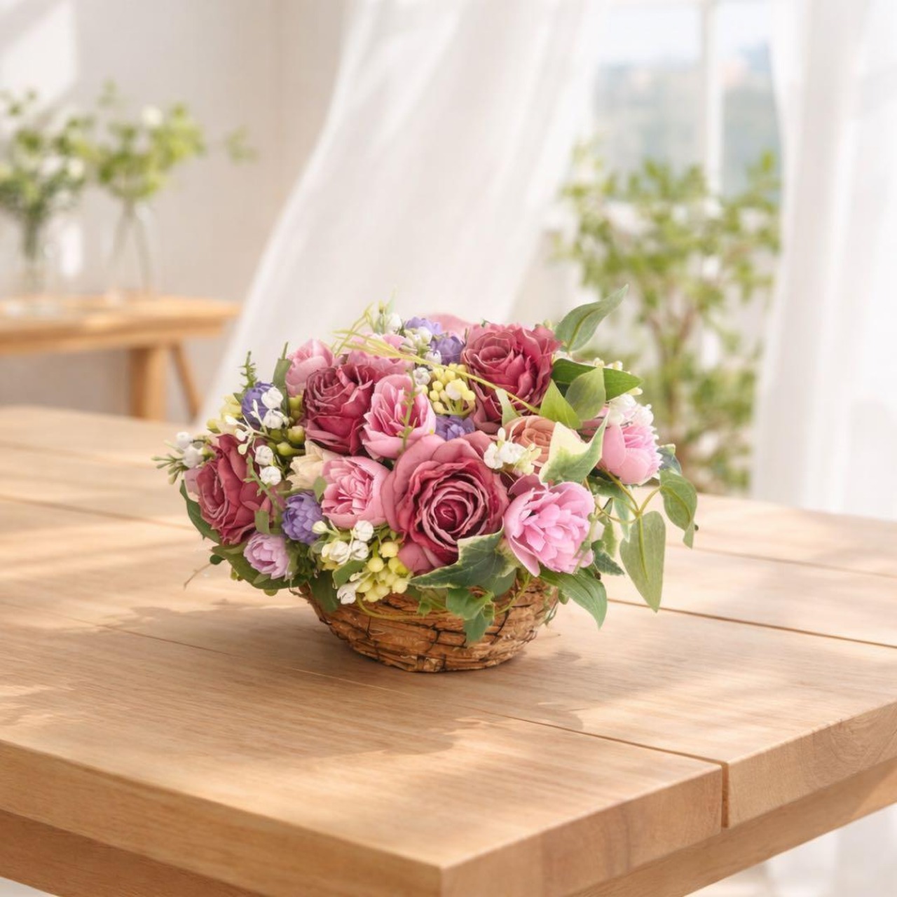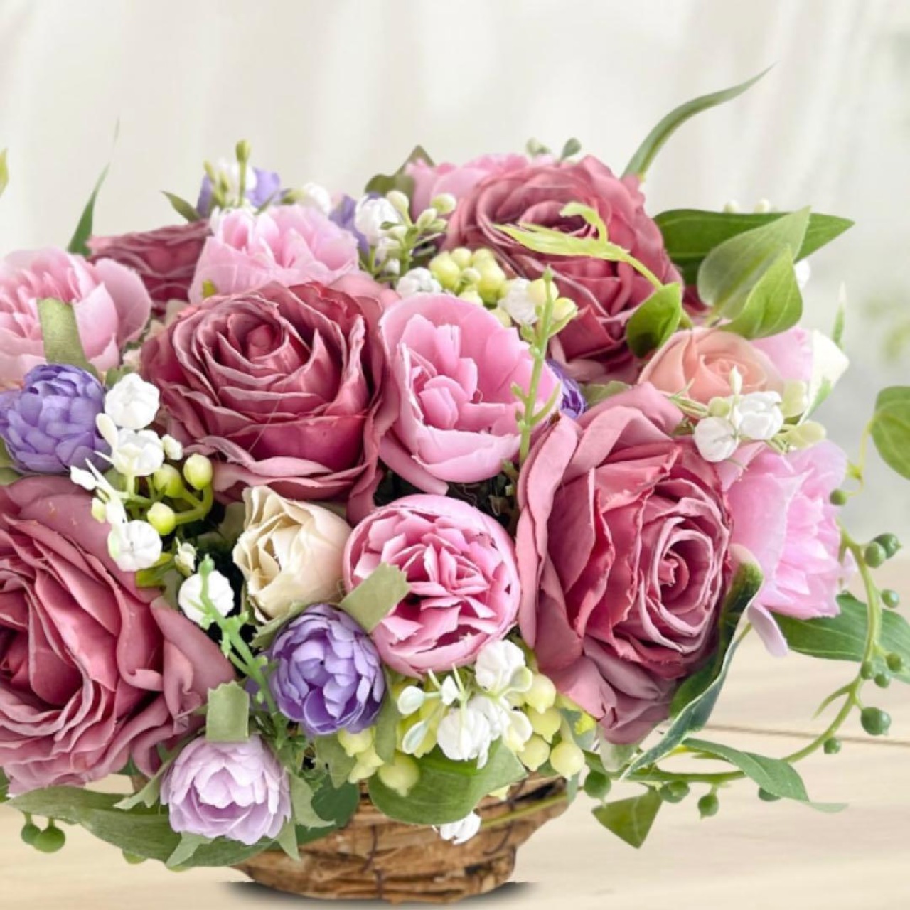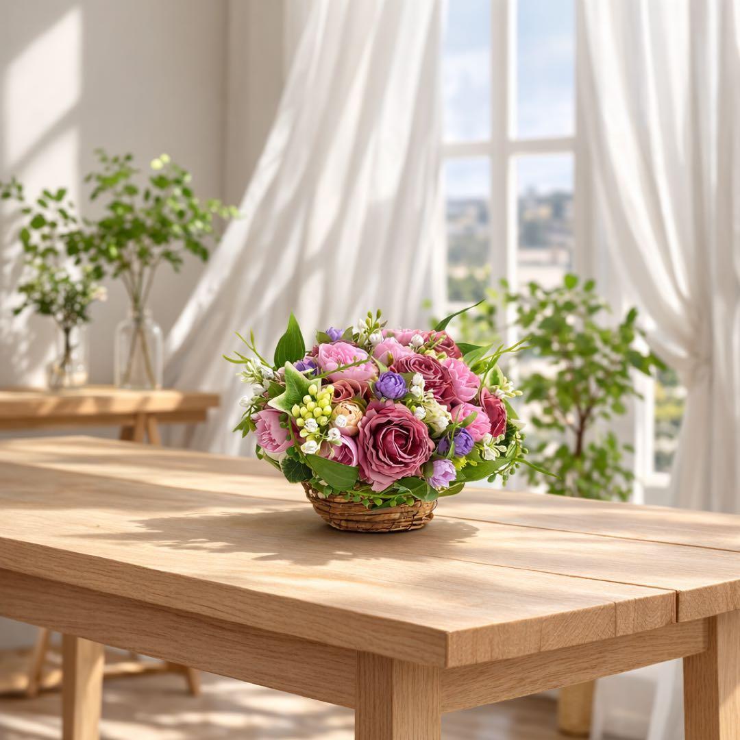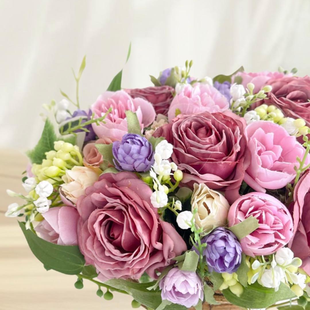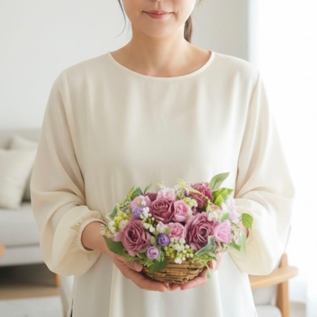 光触媒フラワー「心ほどける贈り物」コンパクトバスケットアレンジ ギフト 贈り物 アーティフィシャルフラワー