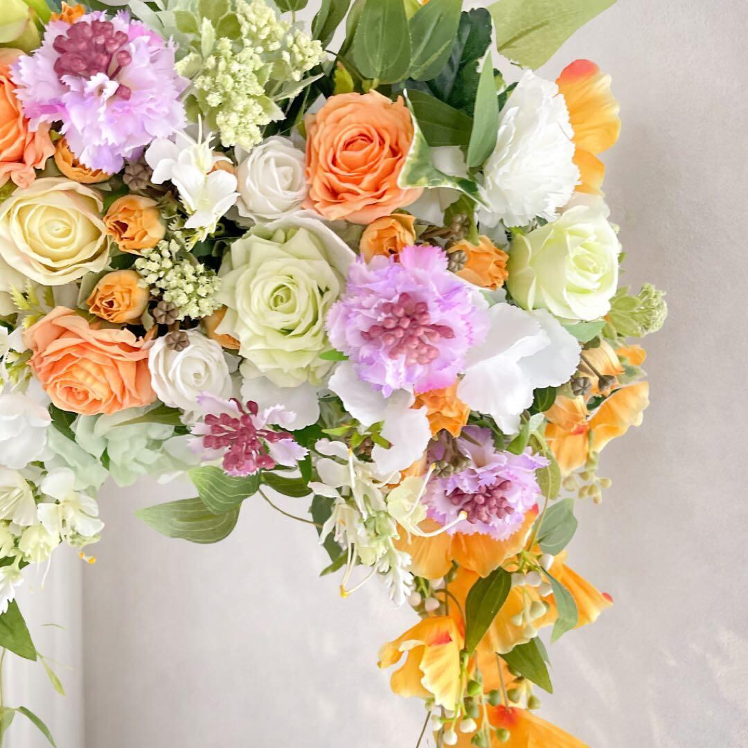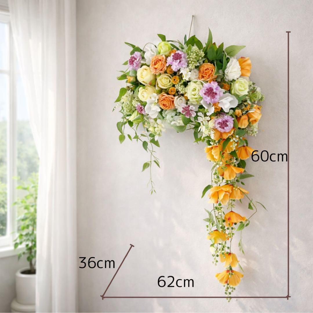 光触媒フラワー 流れる花姿のロングリース 62cm 華やか壁掛けインテリア アーティフィシャルフラワー