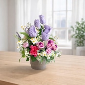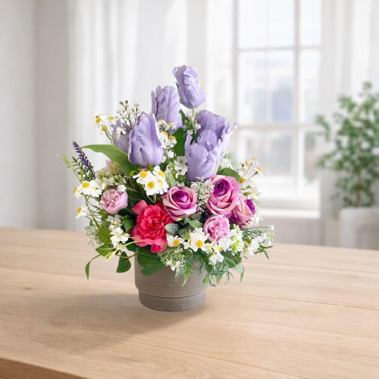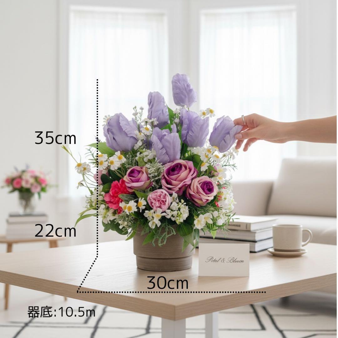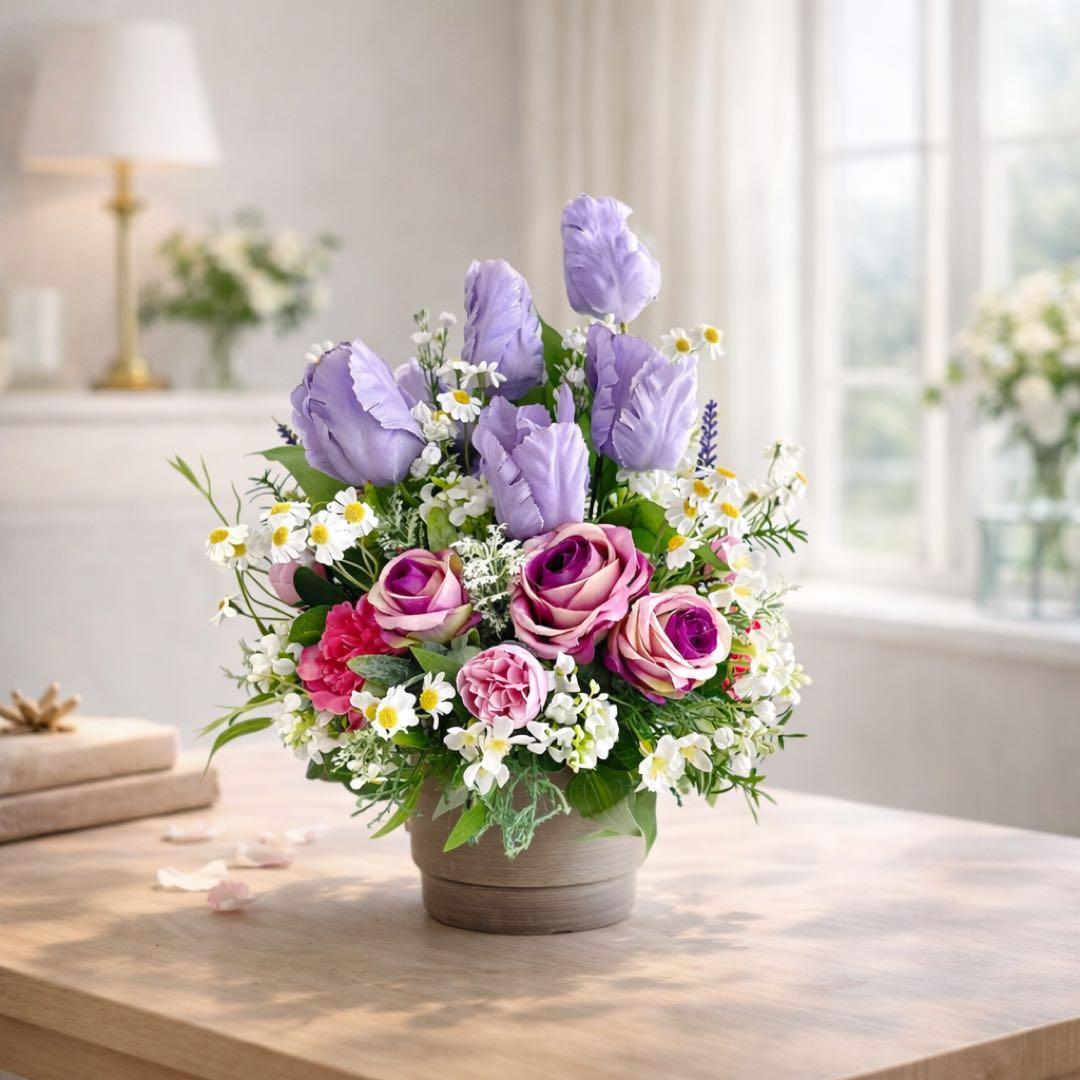 光触媒フラワー チューリップとパープルローズのコンパクトアレンジ 母の日 誕生日 アーティフィシャルフラワー