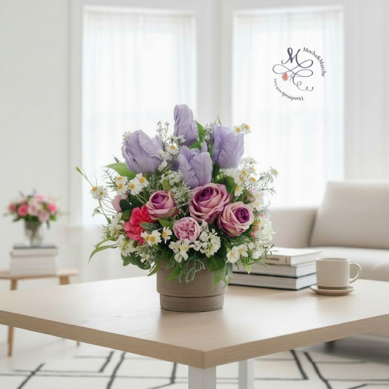 リビングのサイドテーブルや玄関、デスクの上など、ちょっとしたスペースに置くだけで、空間に春の柔らかな癒やしを運びます。