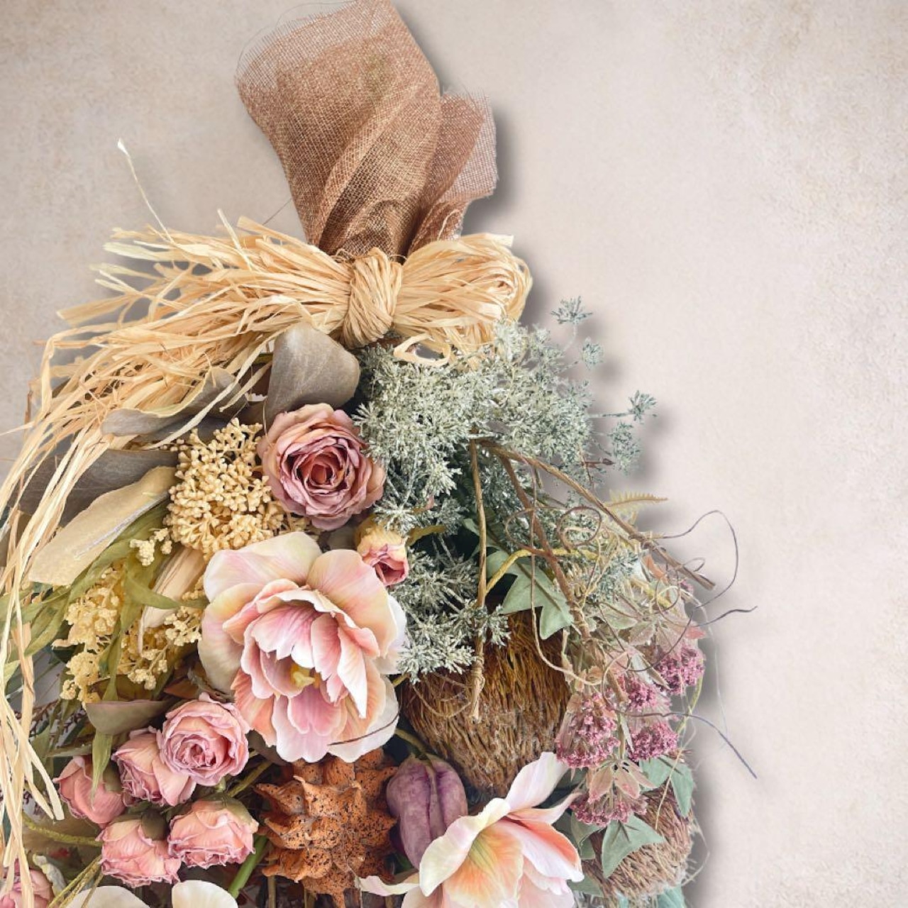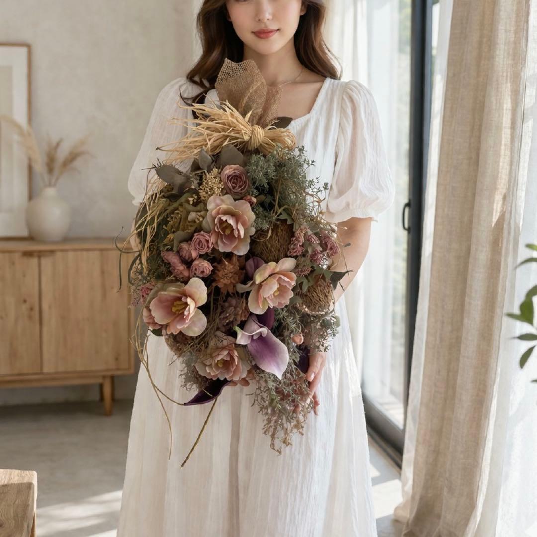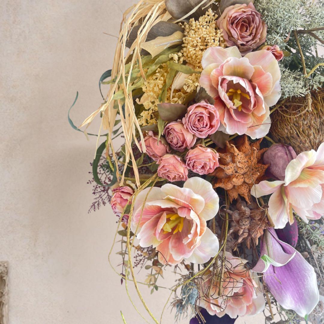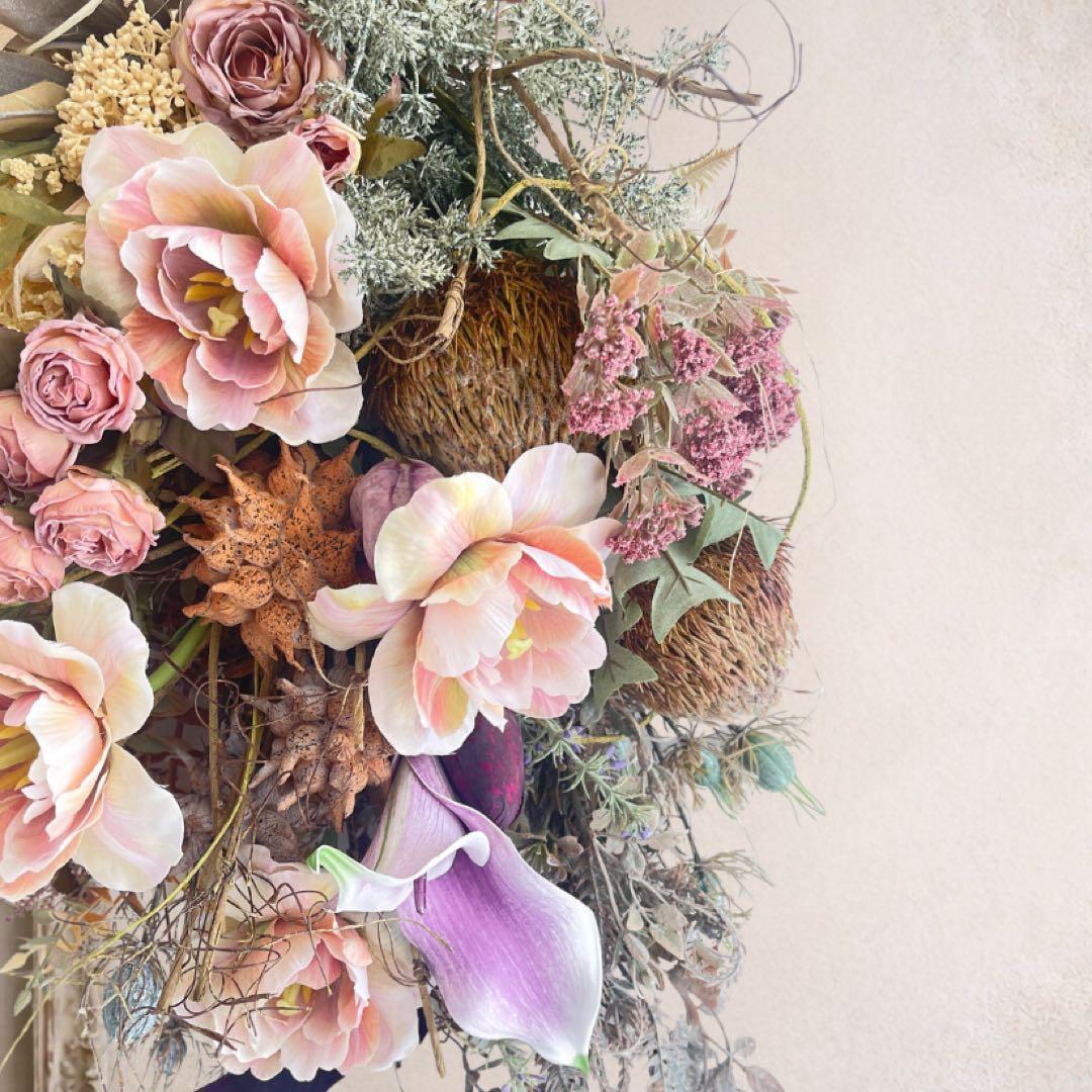 ドライフラワー特有の褪せたような絶妙なニュアンスカラーを、最高品質のアーティフィシャルフラワーで再現。