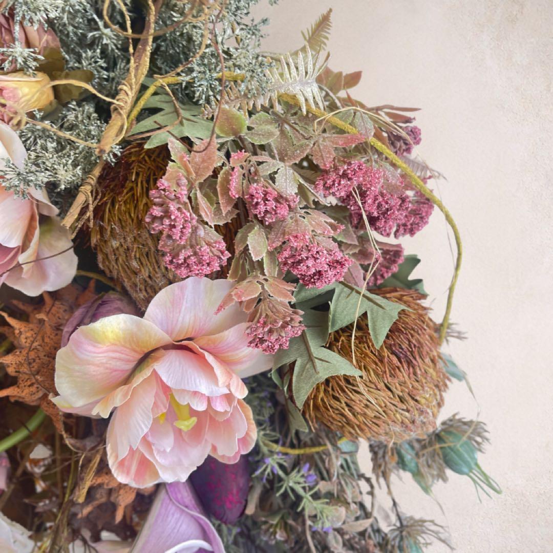 光触媒 「ヴィンテージ・リュクス」バンクシアとドライチューリップのロングスワッグ アーティフィシャルフラワー