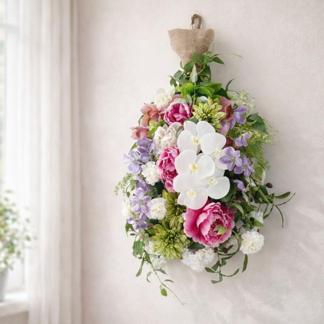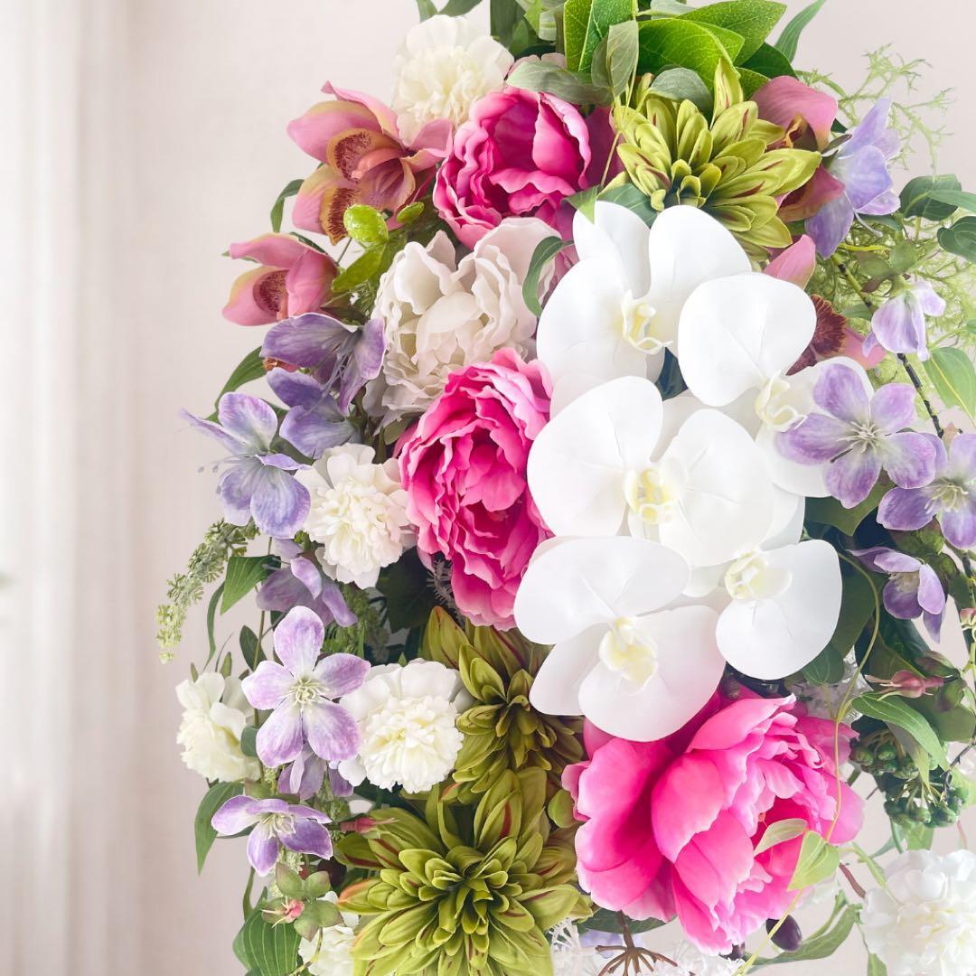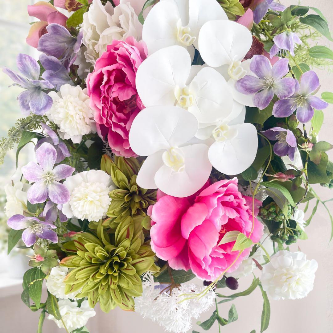光触媒「高貴なる調べ」胡蝶蘭と牡丹の特大プレミアムスワッグ 格式ある贈り物 アーティフィシャルフラワー