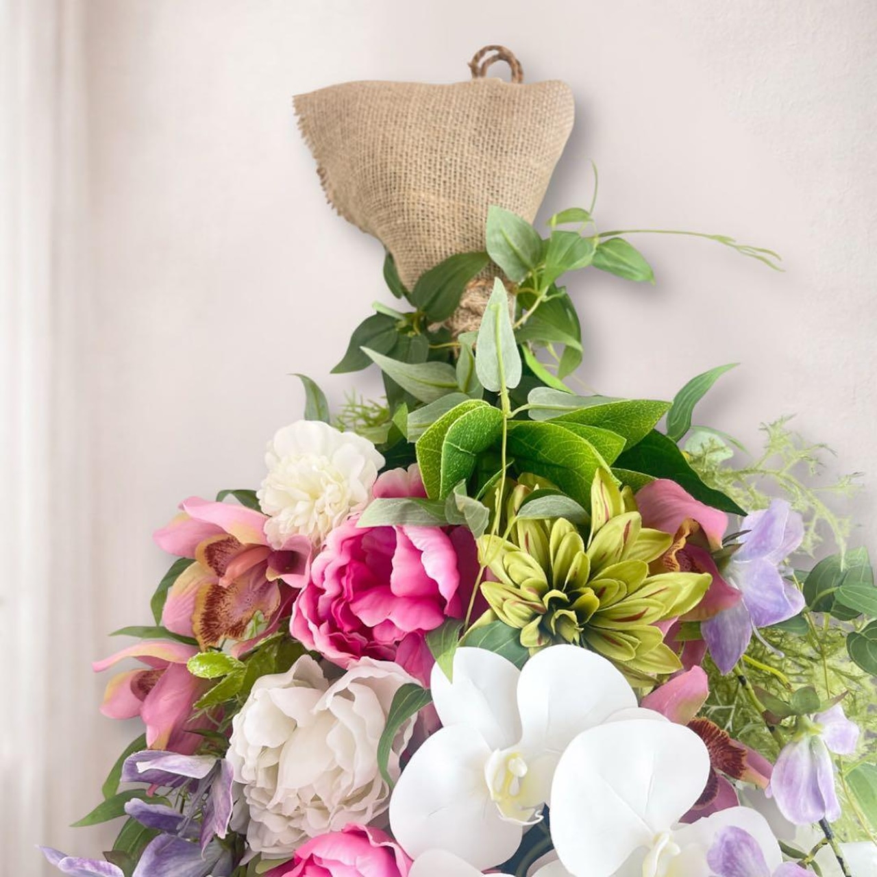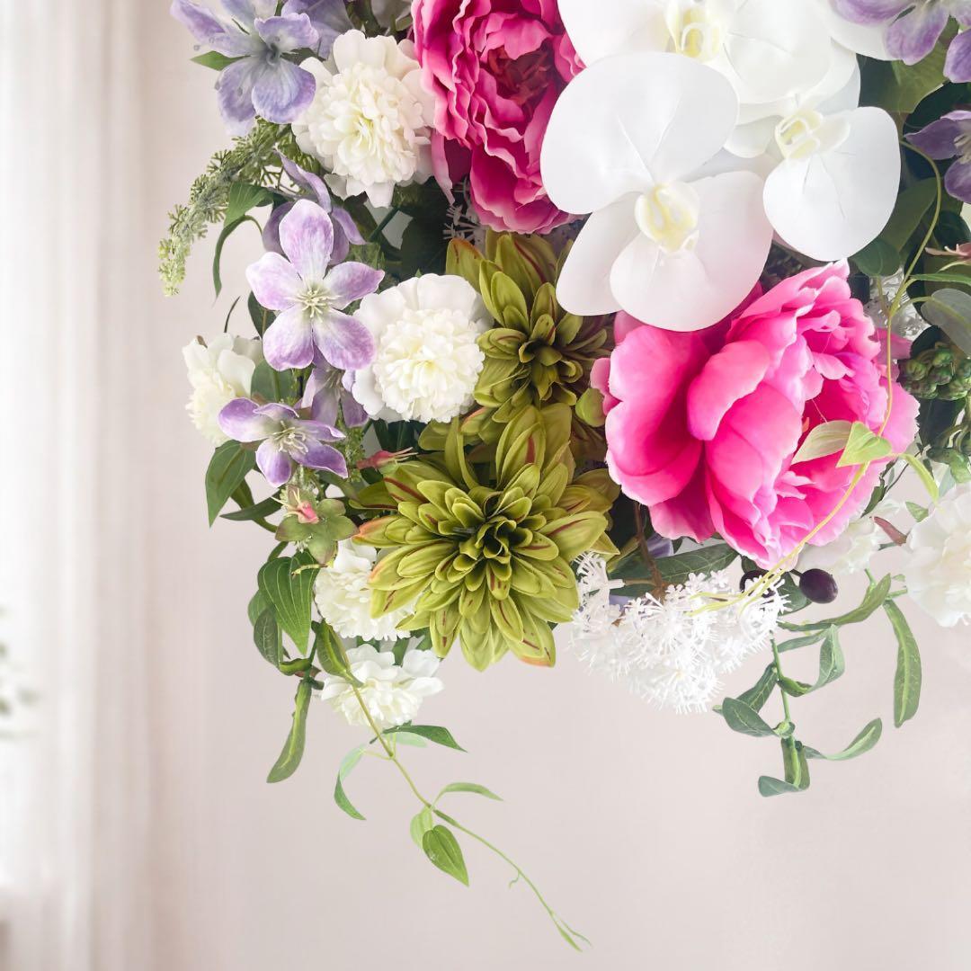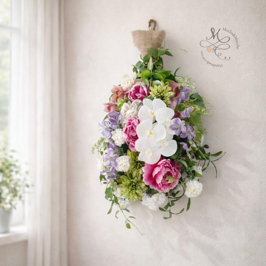 光触媒「高貴なる調べ」胡蝶蘭と牡丹の特大プレミアムスワッグ 格式ある贈り物 アーティフィシャルフラワー