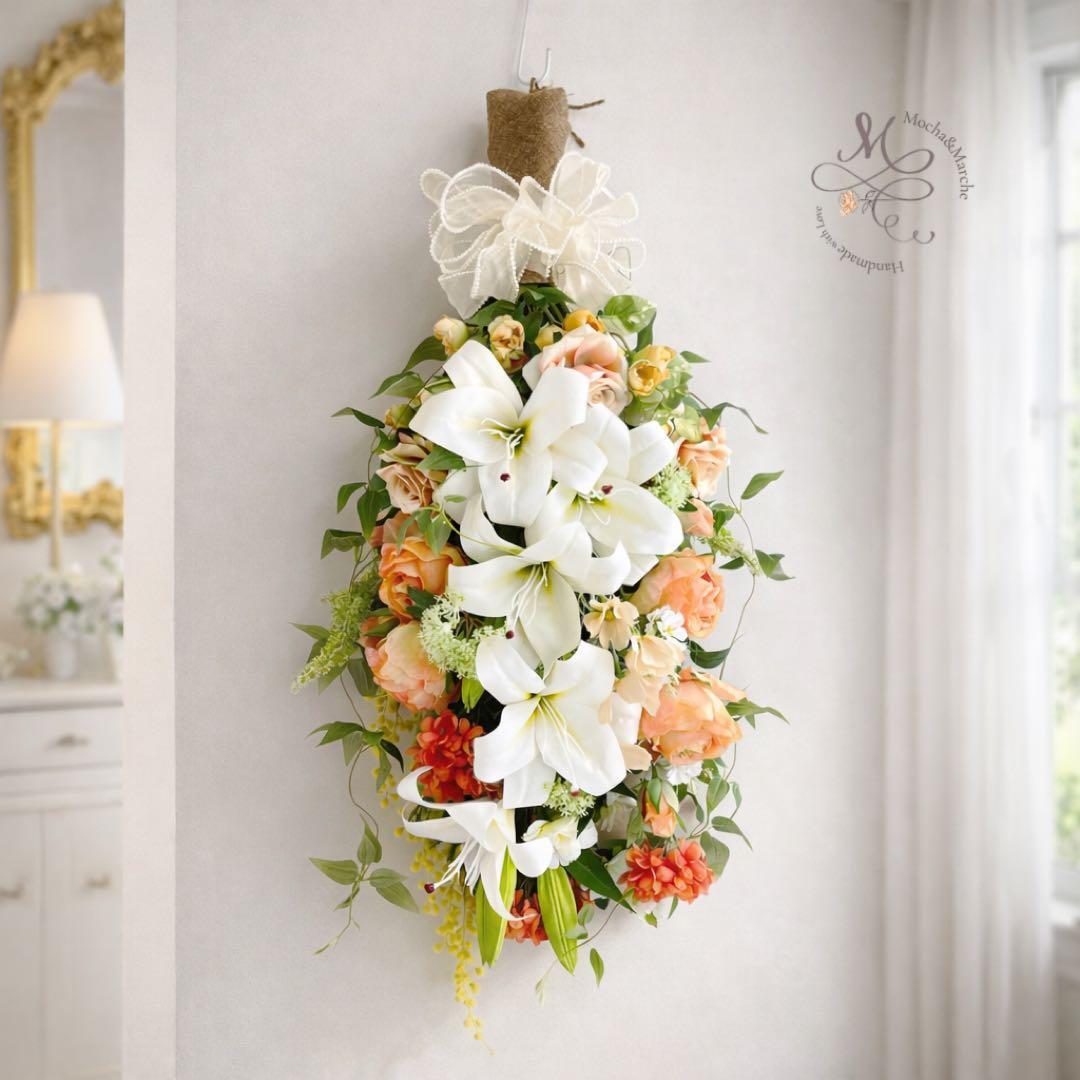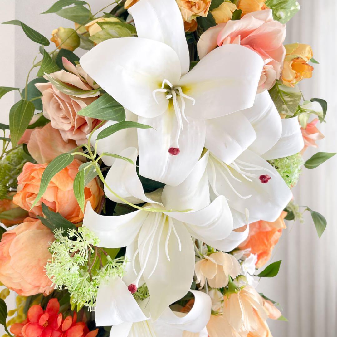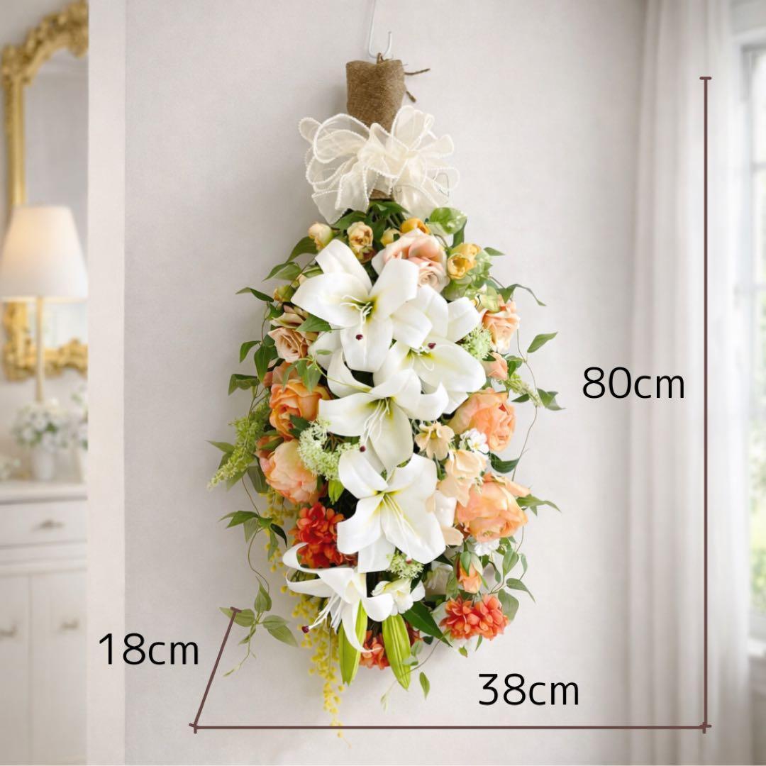 一目で心奪われる大輪のカサブランカを贅沢に配した、全長約80cmの特大ロングスワッグです。