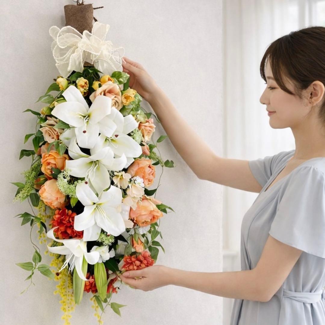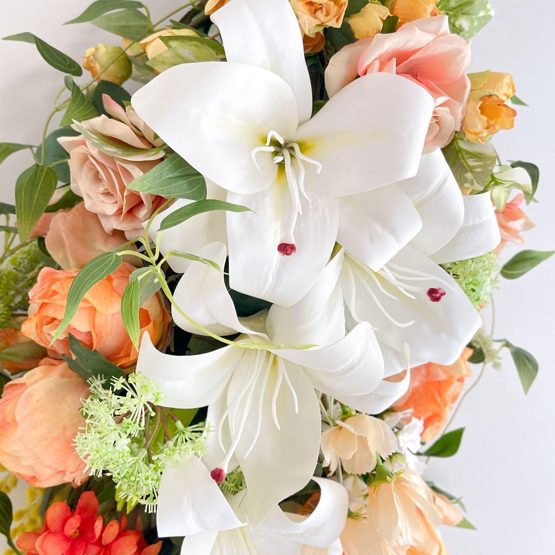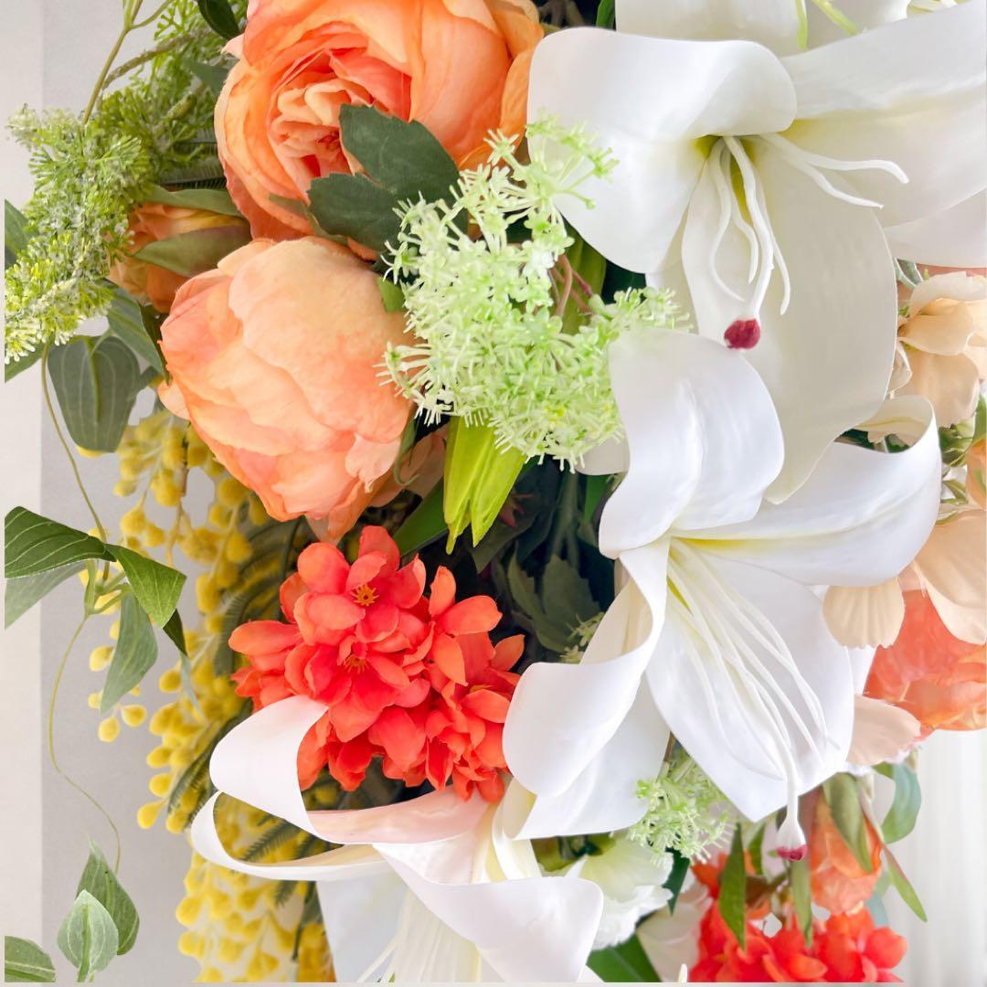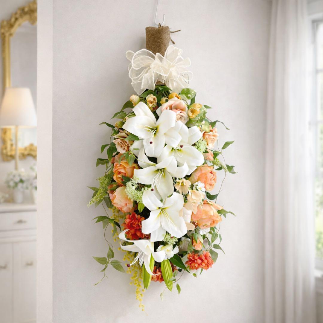一目で心奪われる大輪のカサブランカを贅沢に配した、全長約80cmの特大ロングスワッグです。