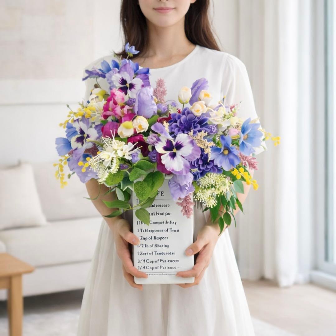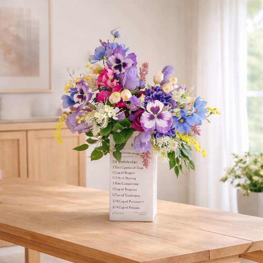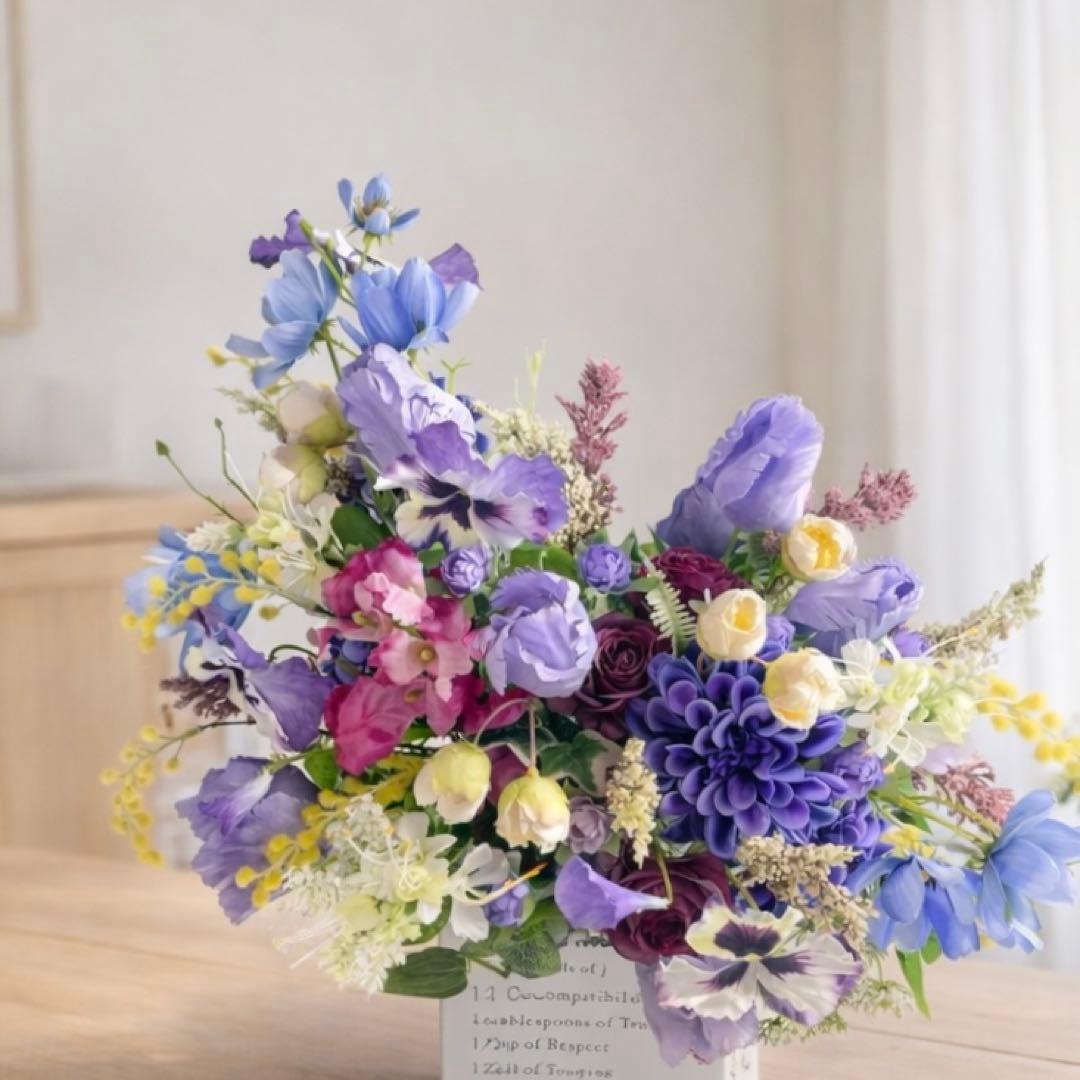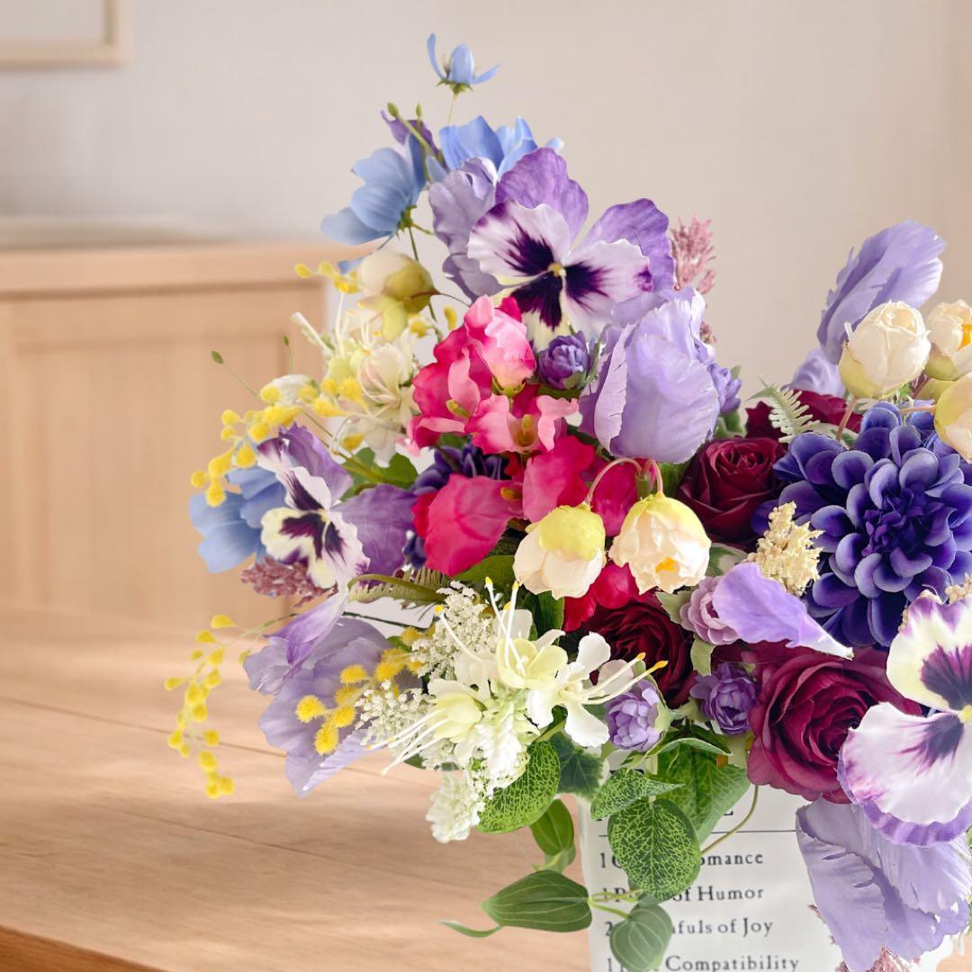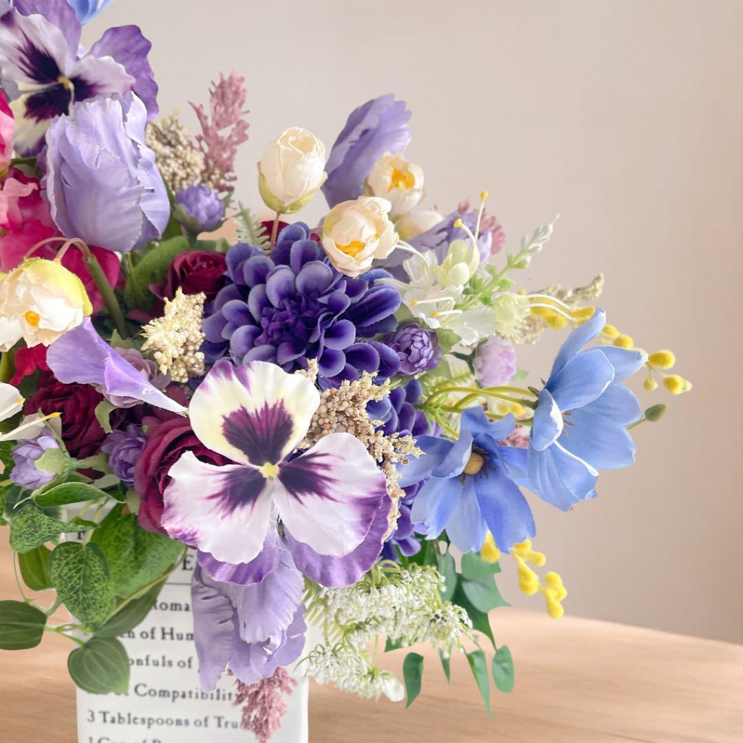 光触媒「スプリング・ポエトリー」パンジーとダリアのアレンジ 母の日プレミアムギフ アーティフィシャルフラワー