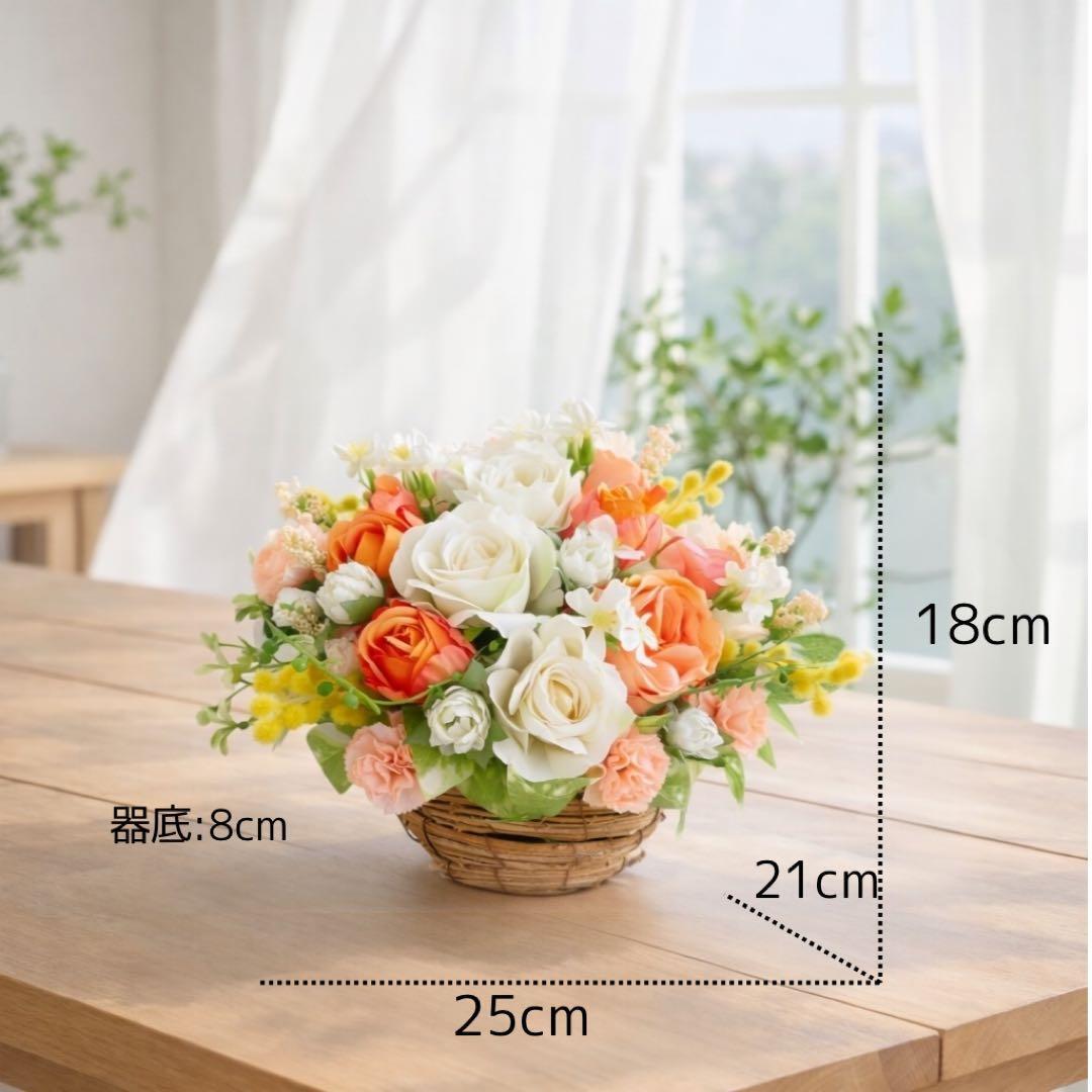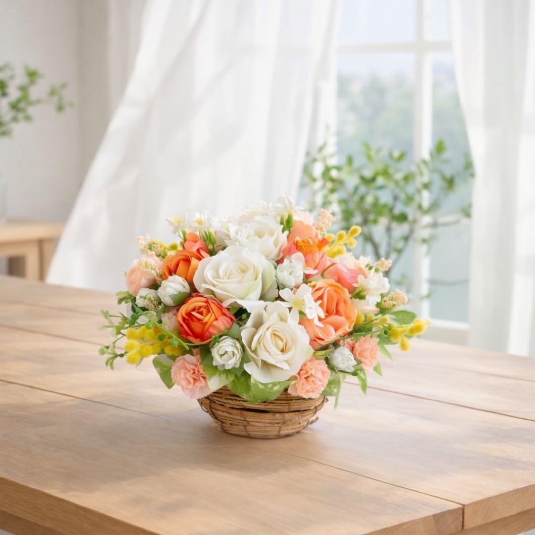 光触媒フラワー 母の日ギフト「サンシャイン・バスケット」オレンジローズとミモザのアレンジ