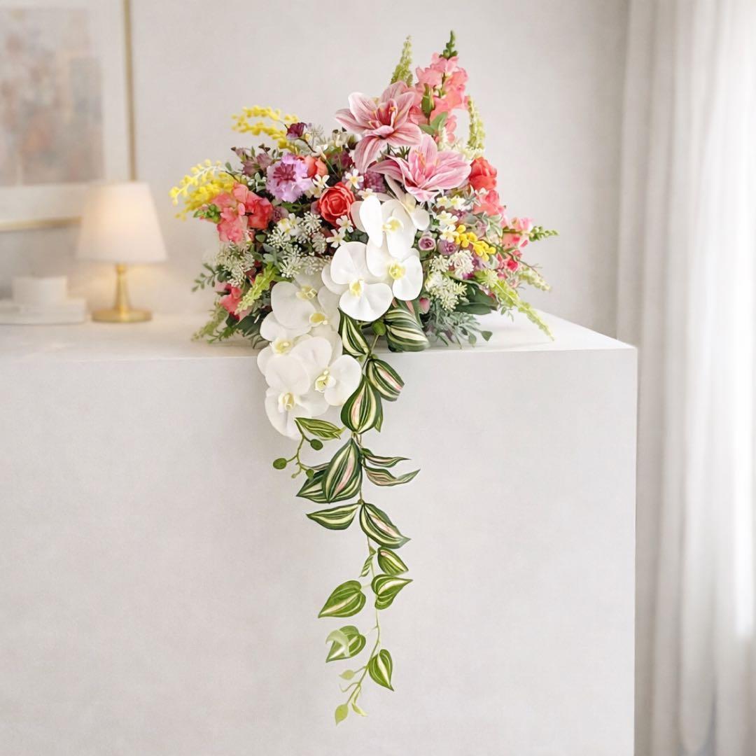 壁掛けOK 2way胡蝶蘭とアマリリスのアレンジ 空間を彩る特大サイズアレンジメント