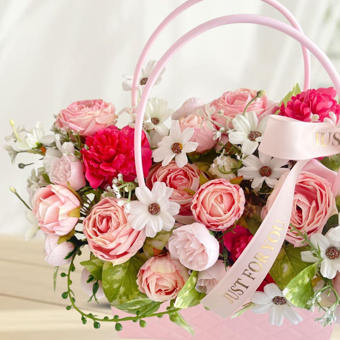 【無料ラッピング】光触媒フラワー 母の日ギフト カーネーションとローズのバック型アレンジ アーティフィシャルフラワー
