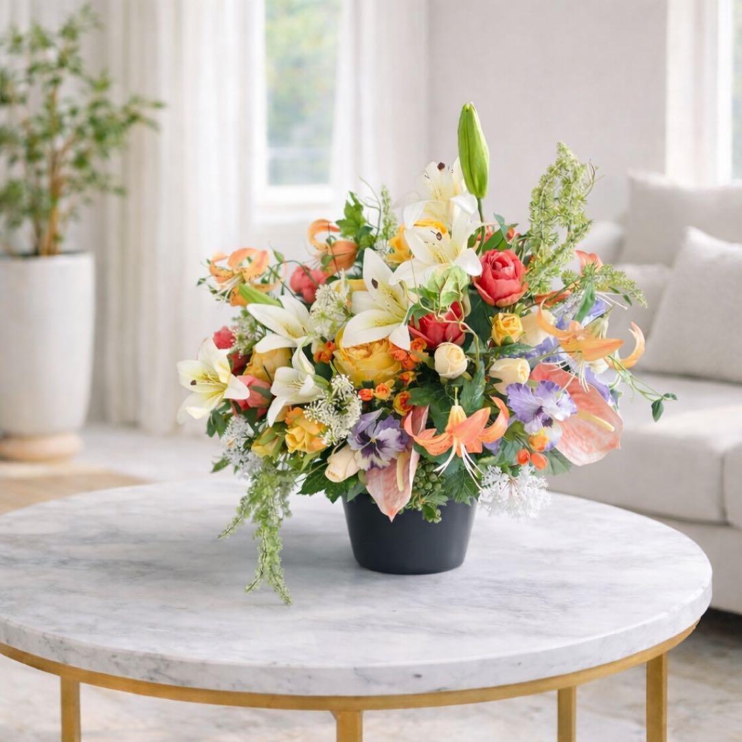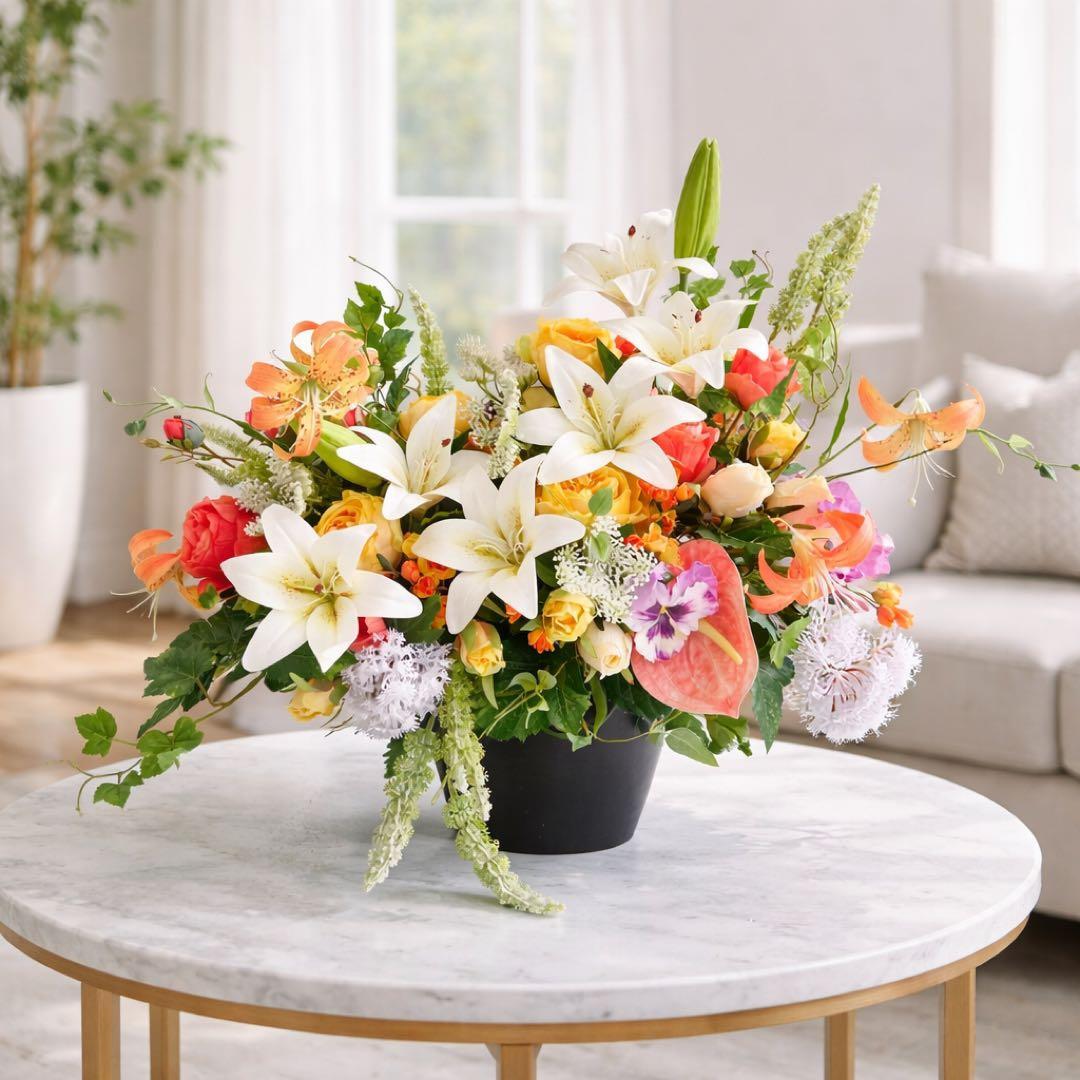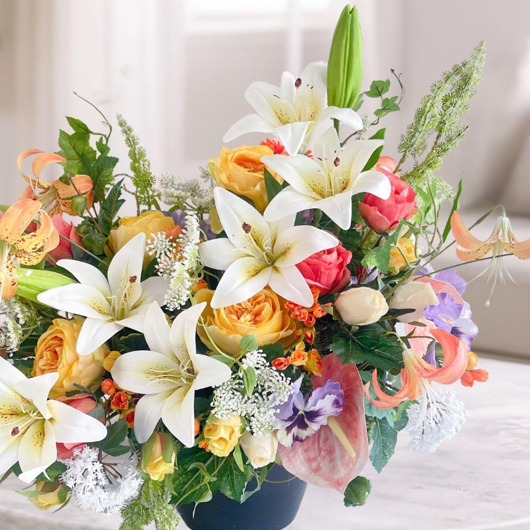 光触媒フラワー 特大ユリアと0-ルドローズのアレンジ 開店祝い 店舗装飾 高級フラワー インテリア アーティフィシャルフラワー