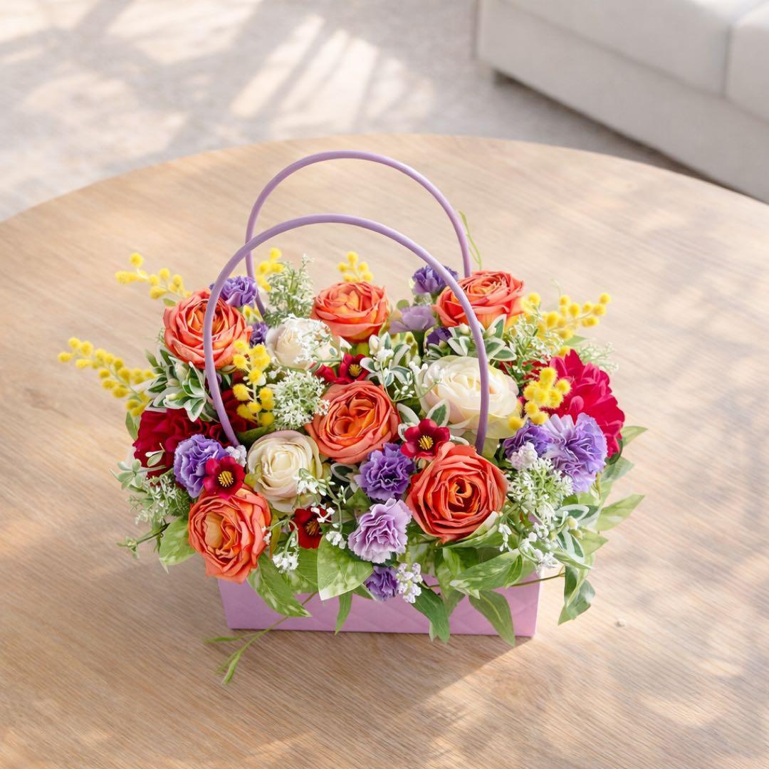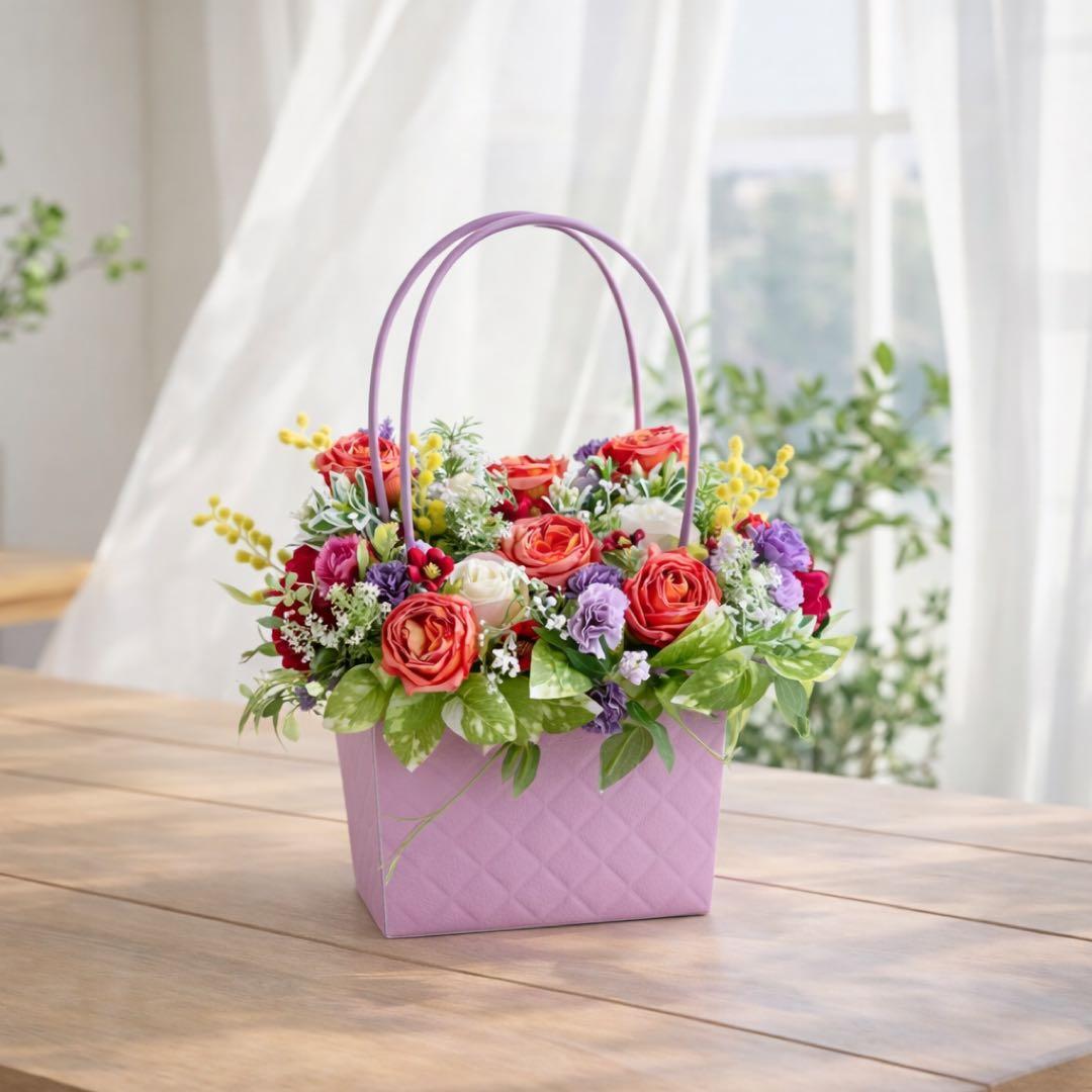 【母の日ギフト】光触媒フラワー「ハッピー・フルール・バッグ」バッグ型アレンジ アーティフィシャルフラワー