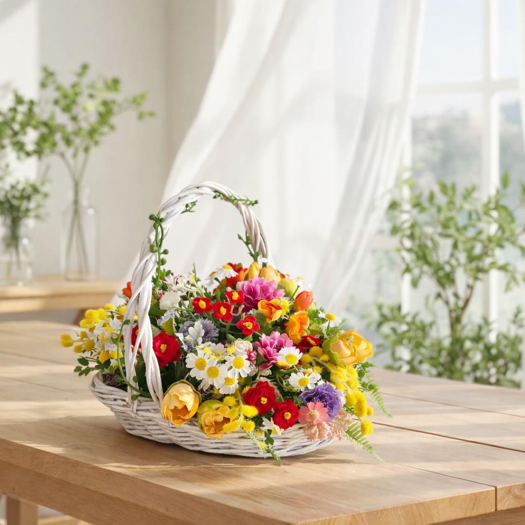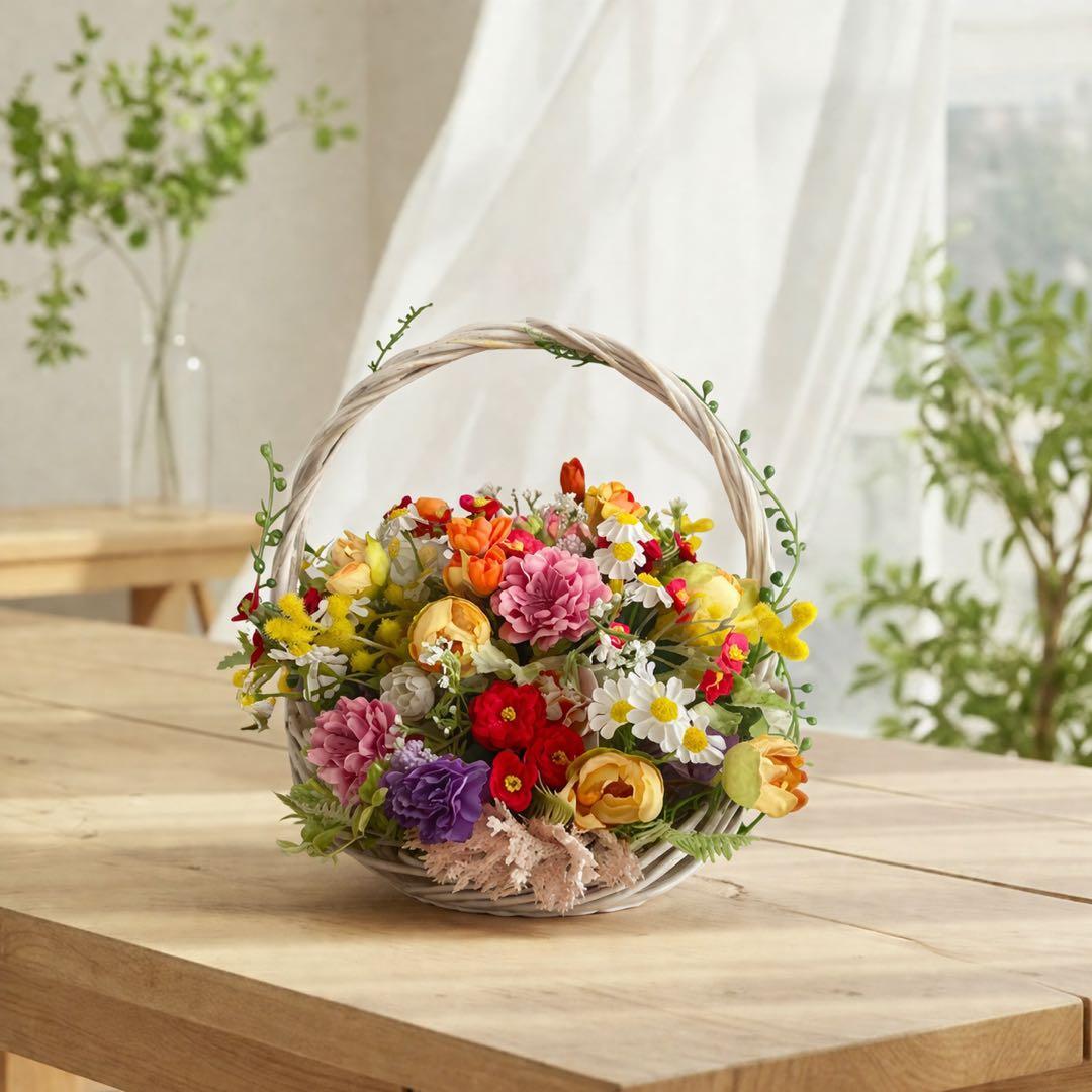 光触媒フラワー「風に揺れる野原」野花のナチュラルバスケット スプリングアレンジ アーティフィシャルフラワー