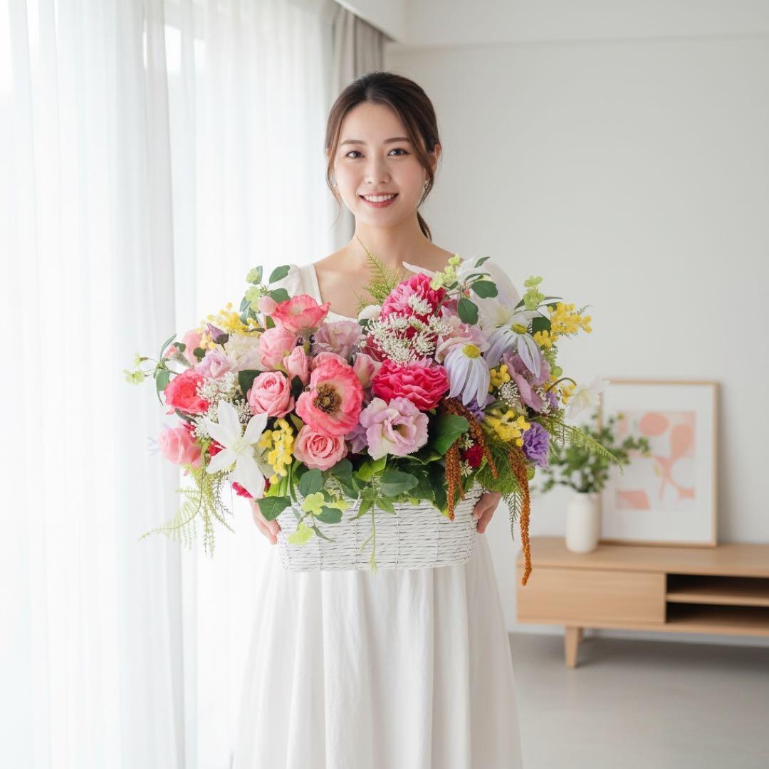 母の日・開店祝いに|横幅53cmの圧倒的存在感“空間が変わる特大アレンジ” 空間装飾 アーティフィシャルフラワー