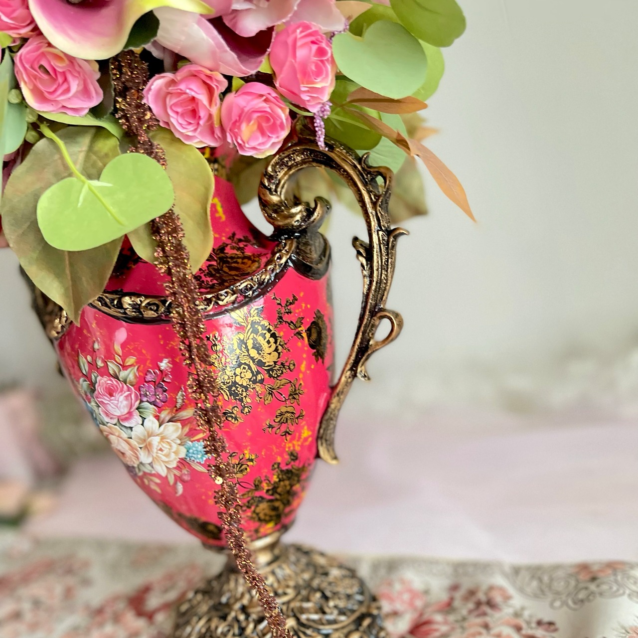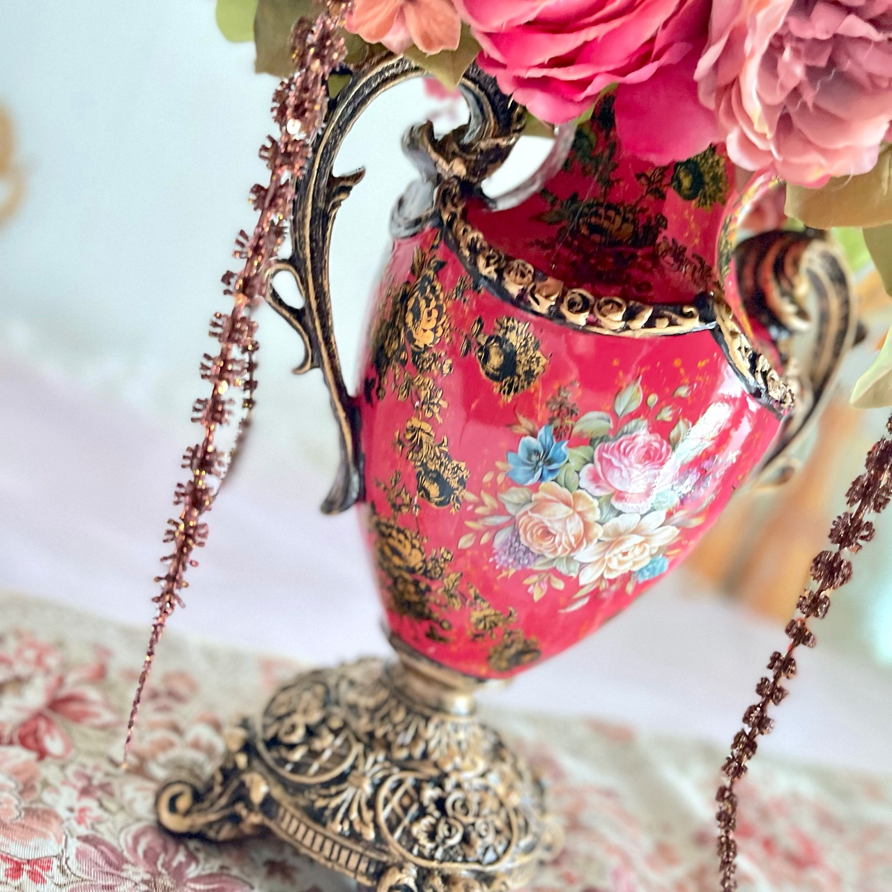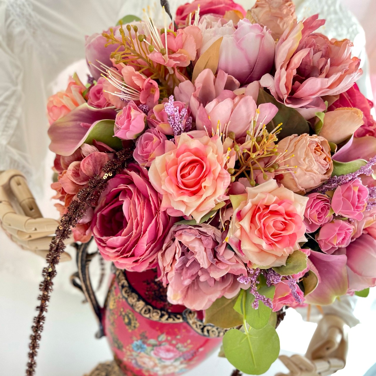 なんとも美しい花器に彩られた豪華絢爛なアレンジメントはまるで、宮殿の装飾飾りのようにしっとりと、それでいて美しく控えめな佇まいは圧巻で見る人を魅了してやみませ。