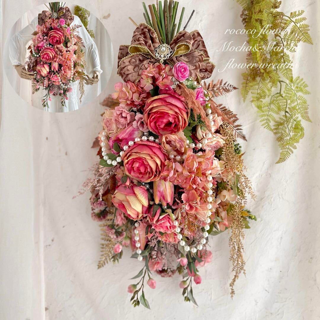 上品さと華やかさが共存する、ロココスタイルの豪華なフラワースワッグです+゜。*(*´∀`*)*。゜+