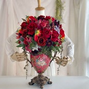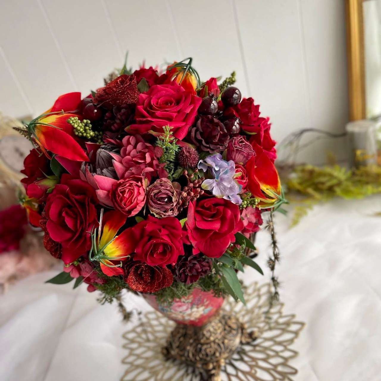 赤薔薇と豪華なデザインの花器の組み合わせは、贅を尽くした美しさを表現してくれます♡