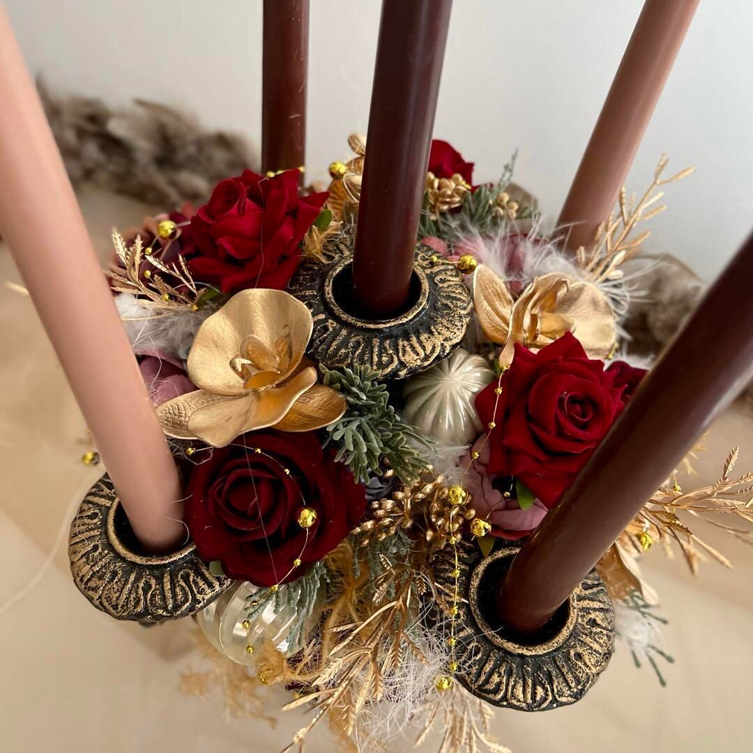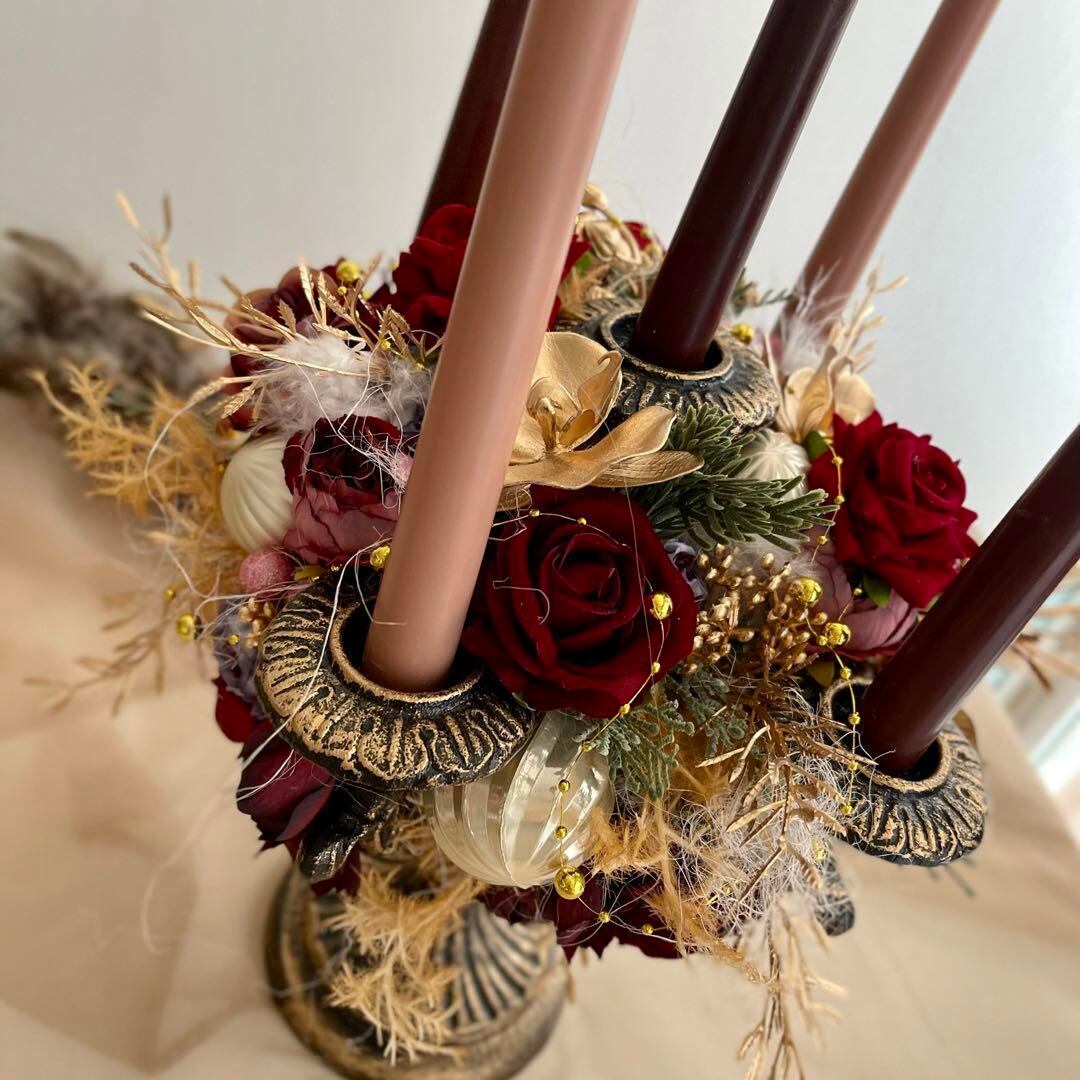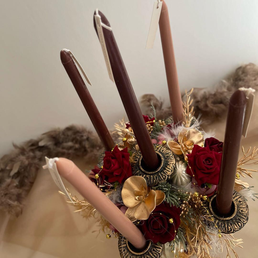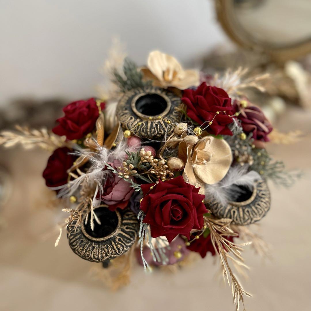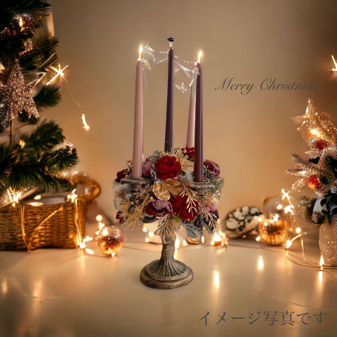 アンティークなクリスマスキャンドル キャンドルフラワー クリスマスアレンジ キャンドルスタンド クリスマスインテリア テーブルフラワー クリスマス 装飾 ギフト