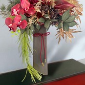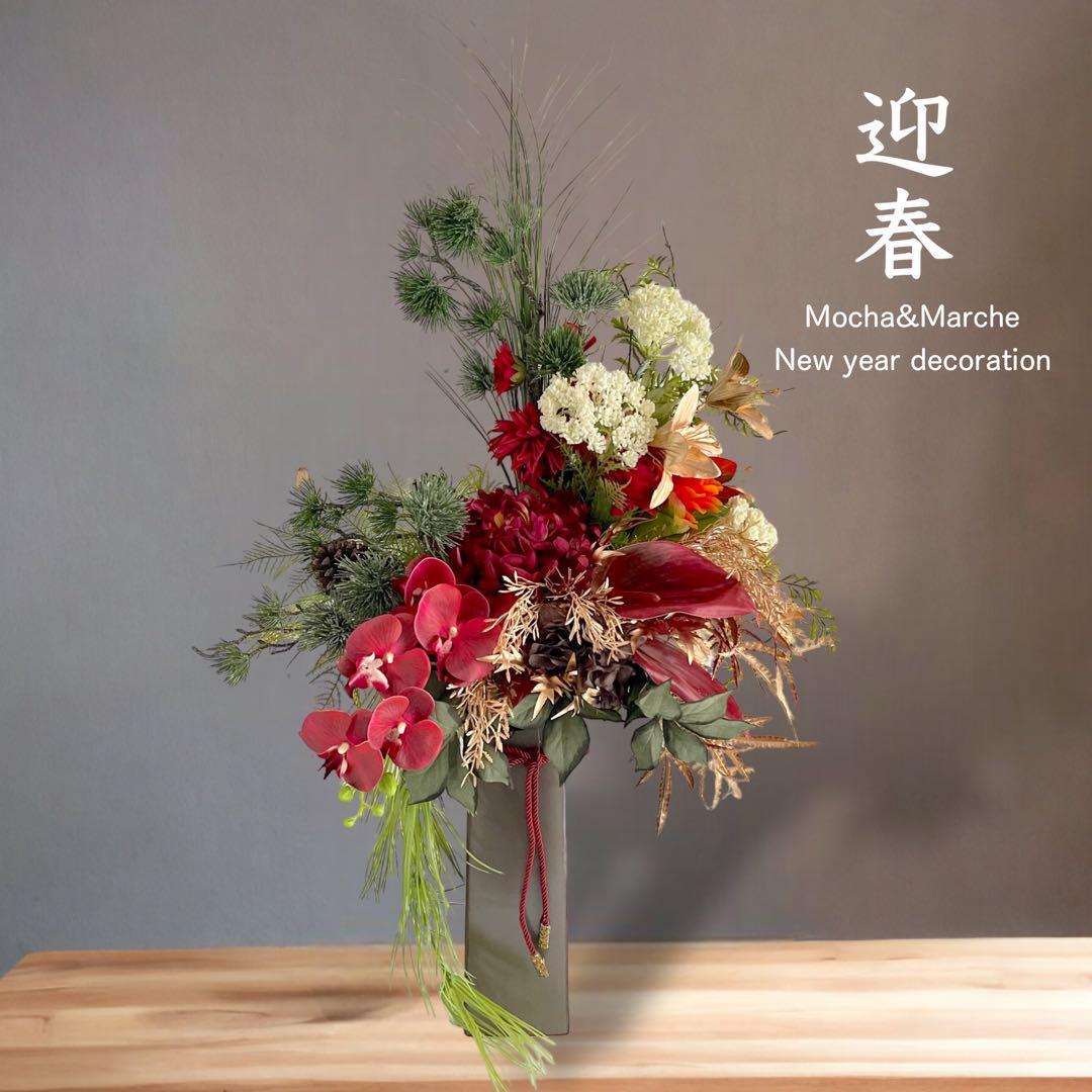 日本の正月を象徴する松や胡蝶蘭、菊を贅沢に取り入れたアレンジは、新春のお祝いやご挨拶にもオススメです。