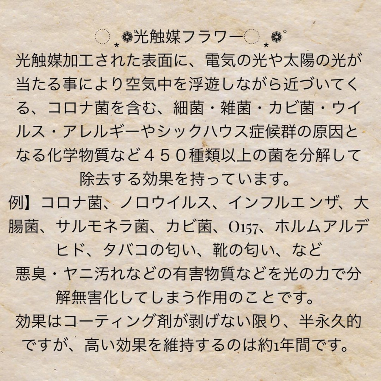 光触媒コーティング加工でお部屋の空気も除菌してくれる優れた花飾りです。