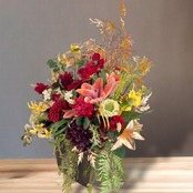 新年の玄関先を美しく演出してくれる大きめサイズのアレンジメントフラワーです。