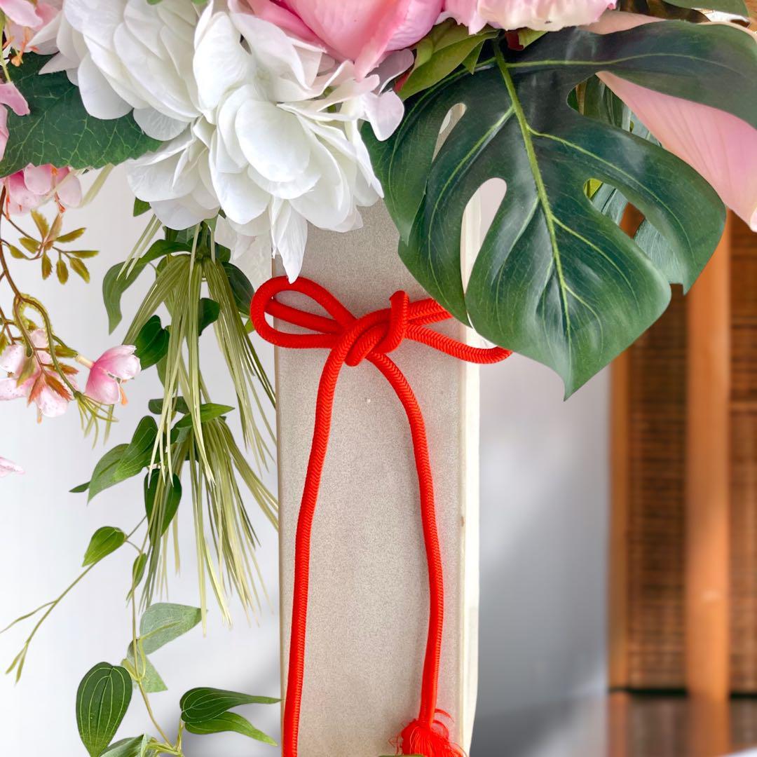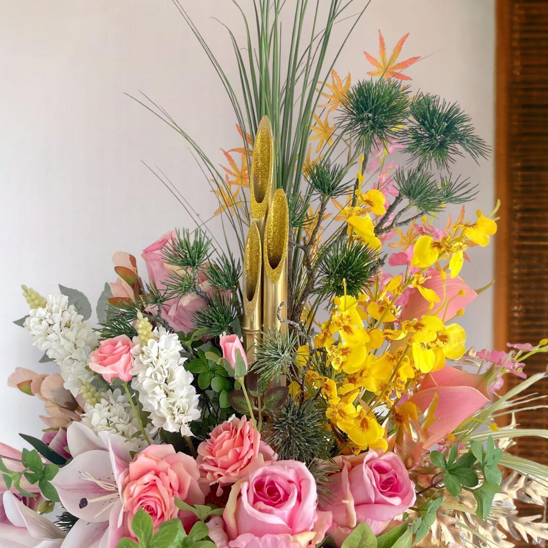 本物の竹をアレンジに飾りつけた、本格的で豪華かつ華やかな印象に仕上げました。