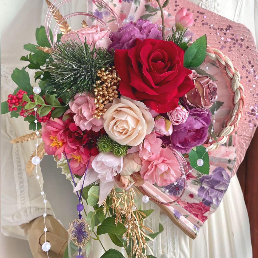 今年の新作は演出ボードをひとつひとつ手作りで製作し、扇子としめ縄を飾りつけ、お花を満開に咲かせた他にはない一点物のデザインです◌ ͙❁˚