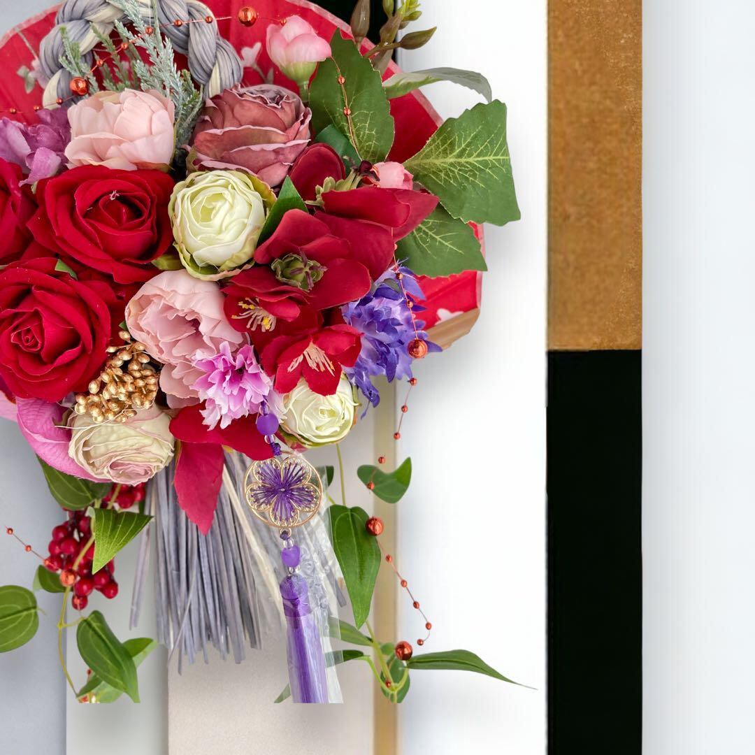 今年の新作は演出ボードをひとつひとつ手作りで製作し、扇子としめ縄を飾りつけ、お花を満開に咲かせた他にはない一点物のデザインです◌ ͙❁˚
