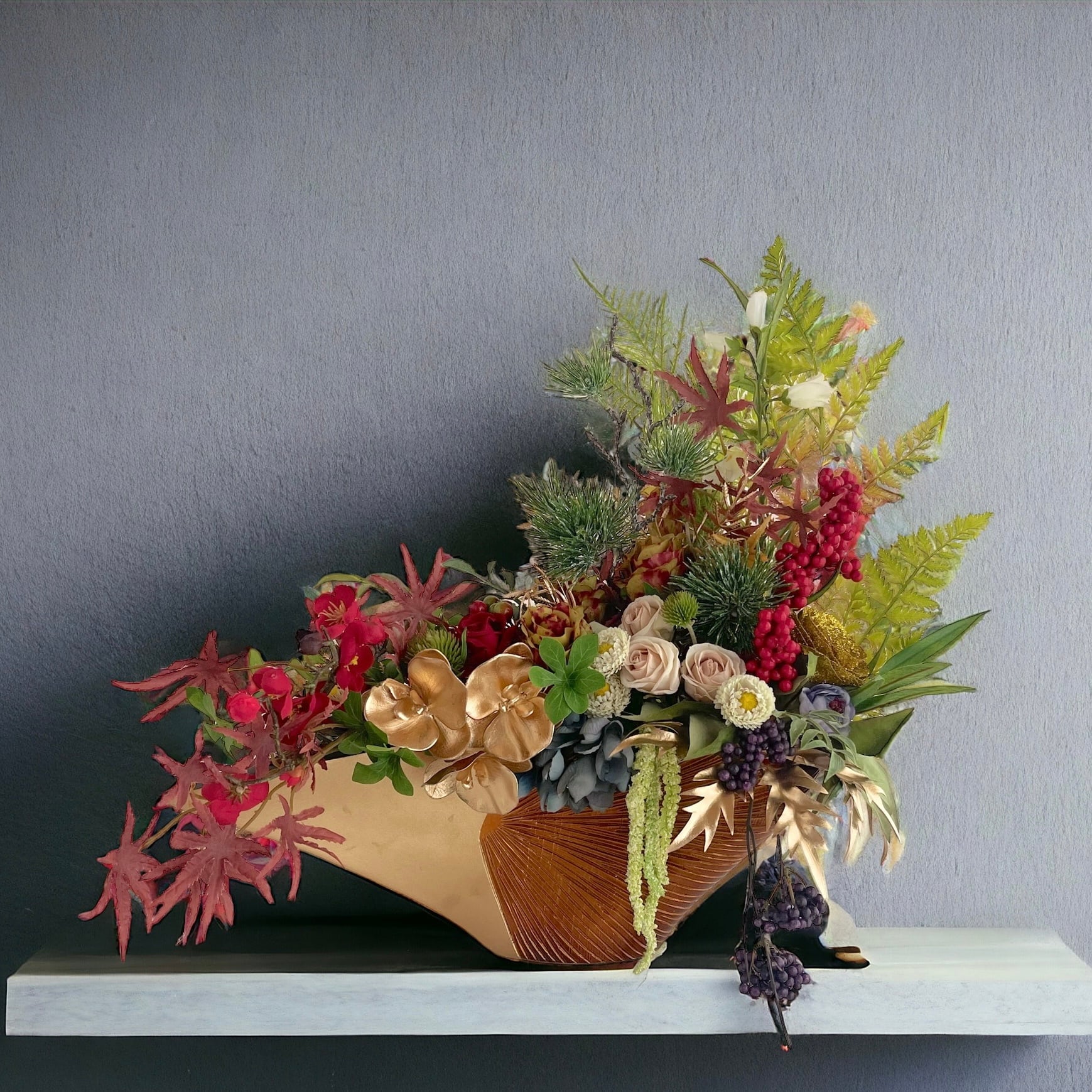 雅な美しい、和の部屋にも洋の部屋にも似合うスタイリッシュでオシャレなフラワーアレンジメントです。