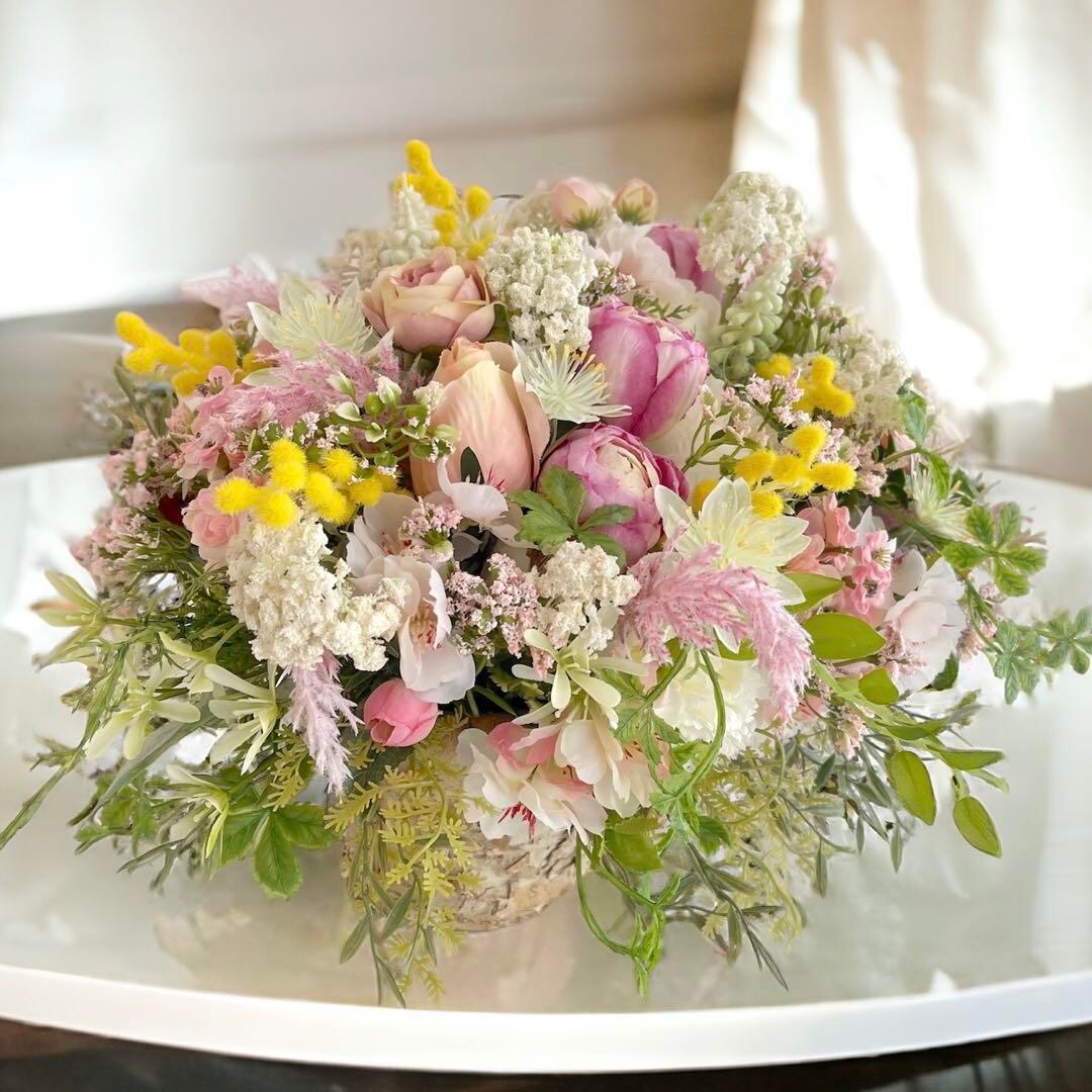 白樺のバスケットに咲いた、乙女なロマンチックさが溢れるフラワーアレンジメントです◌ ͙❁˚