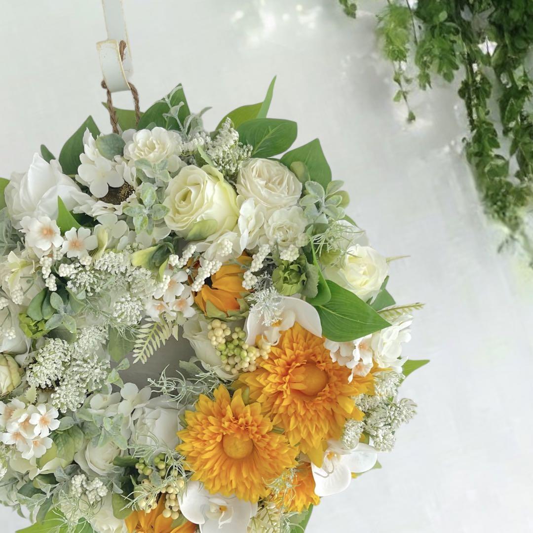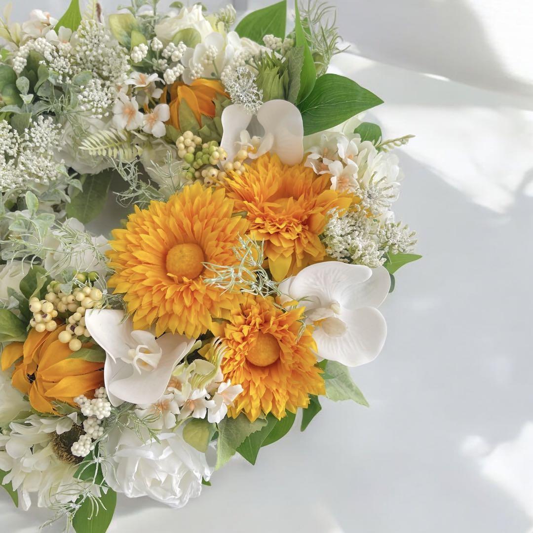 光触媒 向日葵のリース サマーリース 玄関飾り 夏飾り 造花 アート花 造花
