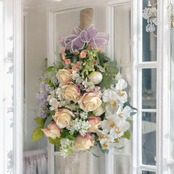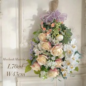 まるで夢の中に咲き誇る花々をそのまま切り取ったかのような、優雅で存在感あふれる特大サイズの胡蝶蘭の咲き誇るスワッグです。