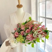 ローズやカラー、ふんわりとしたアスチルベを組み合わせ、どこかクラシカルな雰囲気を纏わせたデザインは、上品でありながら温かみを感じる仕上がりです。