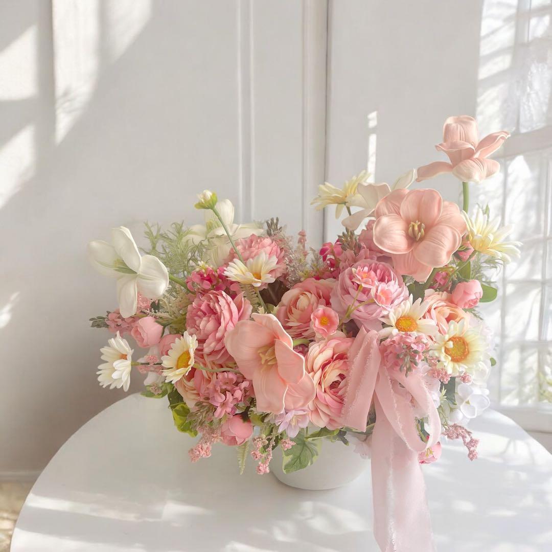 自由に咲き誇るお花たちが描き出す立体感と軽やかな雰囲気は、どんな空間も華やぎに満ちた特別な場所へと変えてくれるでしょう。