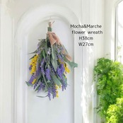ラベンダーとミモザのナチュラルスワッグ おしゃれなインテリア 造花 春リース