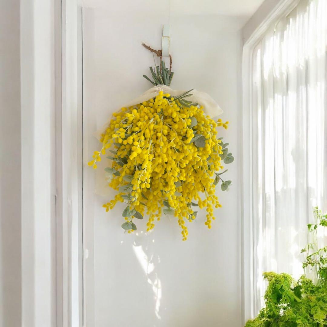 春色 ミモザとユーカリのスワッグ アーティフィシャルフラワー 春リース 造花